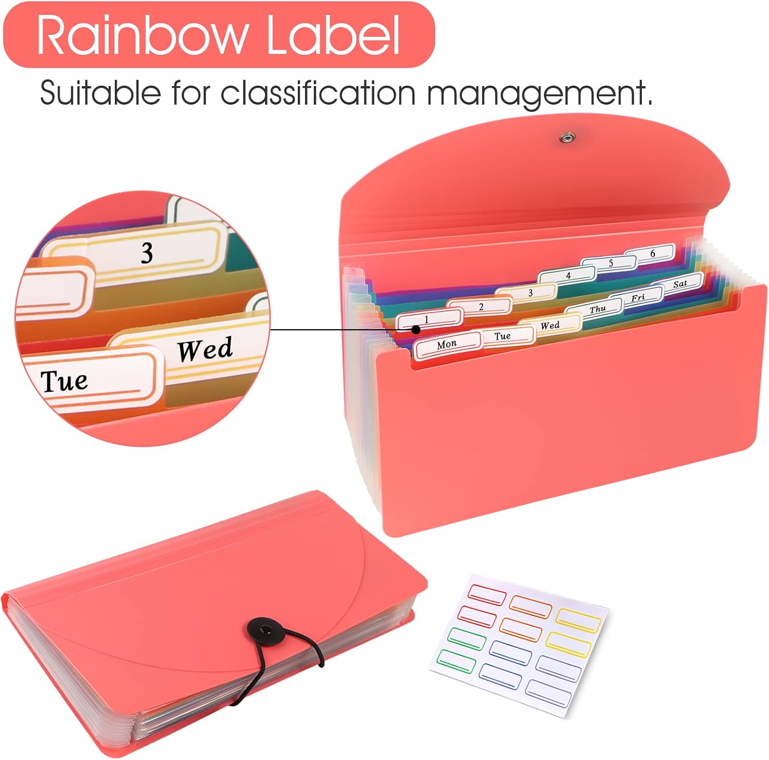 - 2 Pack 13 Pockets accordion file organizer, colored labels for easy subdivision and indexing