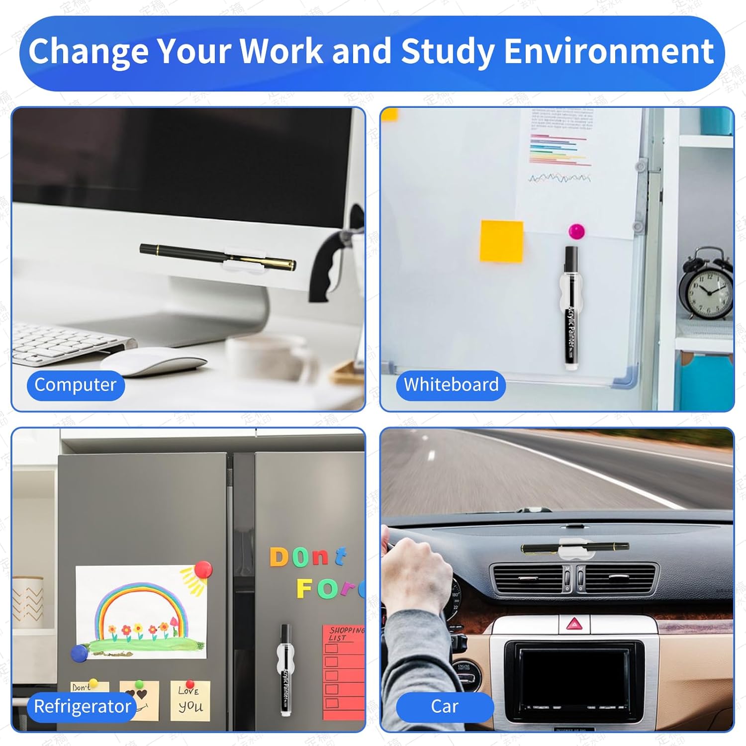 - 【Change Your Work and Study Environment】These pen pencil holders can not only be easily stuck on the desktop, but also can be fixed on the wall, clipboard, car, monitors, mirrors etc. They can hold thin and thicker pencils, pens, markers, etc. which allows you to save time by no longer wasting it searching for pens on your desk. It is an artifact that comes to your doorstep for whom need to organize a large amount of stationery.