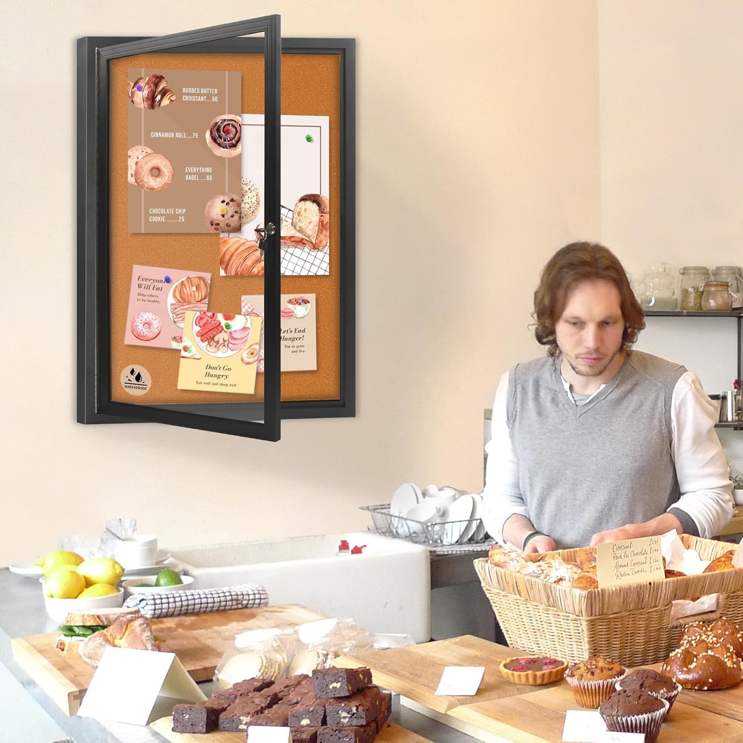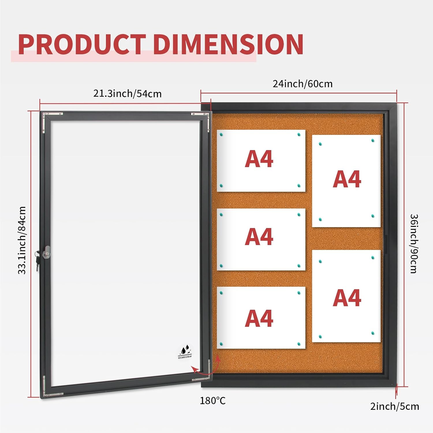 Enclosed Bulletin Board,Outdoor Weatherproof Cork Noticeboard with Locking Door, Wall-Mounted Black Aluminum Frame,Display Case Message Board for Office Home,36x24 Inch (5xA4)