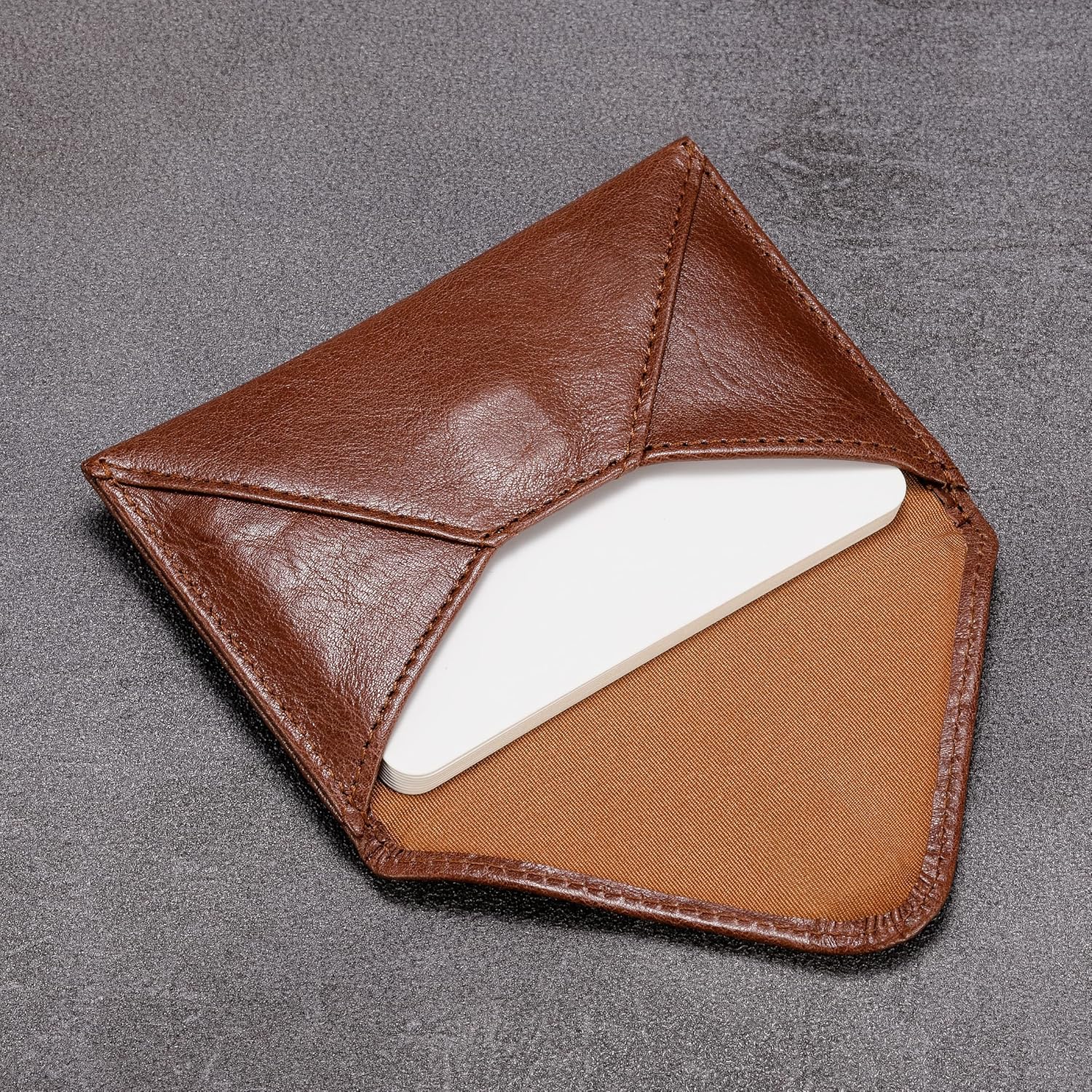 HISCOW Envelope Business Card Case with Magnet Closure - Italian Calfskin (Coffee Vegetable-Tanned Leather)