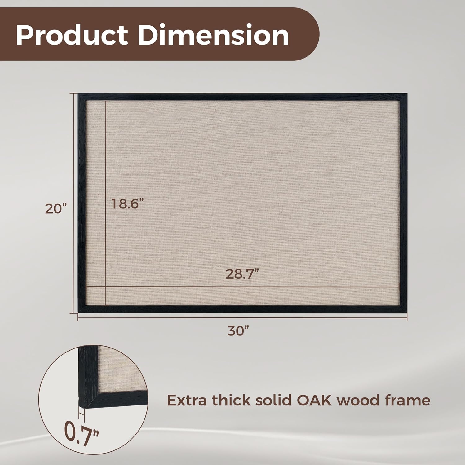 Fun Memories Cork Board Bulletin Board for Office, 20" x 30" Oak Wooden Framed Corkboard, Wall Mounted Notice Pin Board for School Home & Office, Black