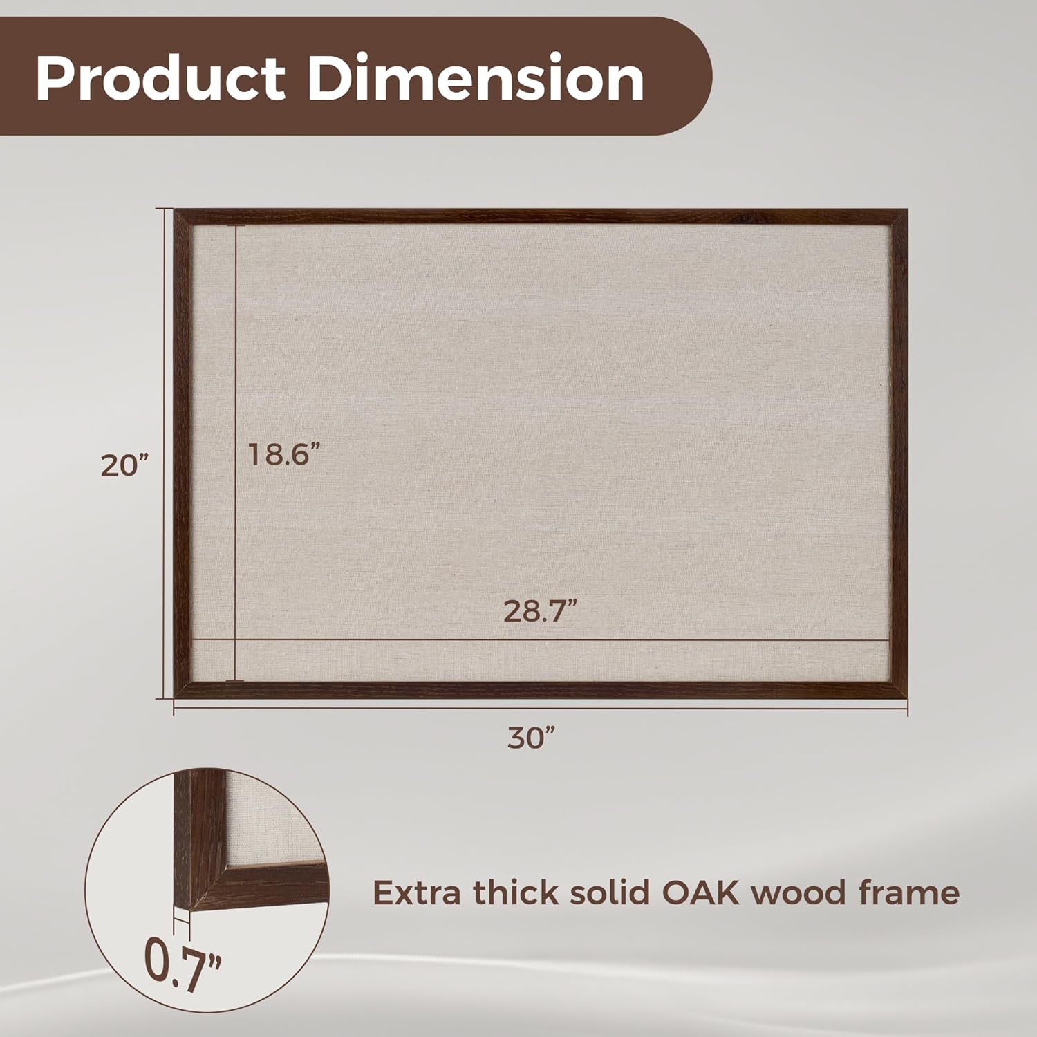 - Oak Frame Material: Our cork boards for walls is made of 100% oak wood which has well self-healing ability and repairability. The pin board features a four-ply splint design that is strong and thick enough not to be punctured by thumbtacks.