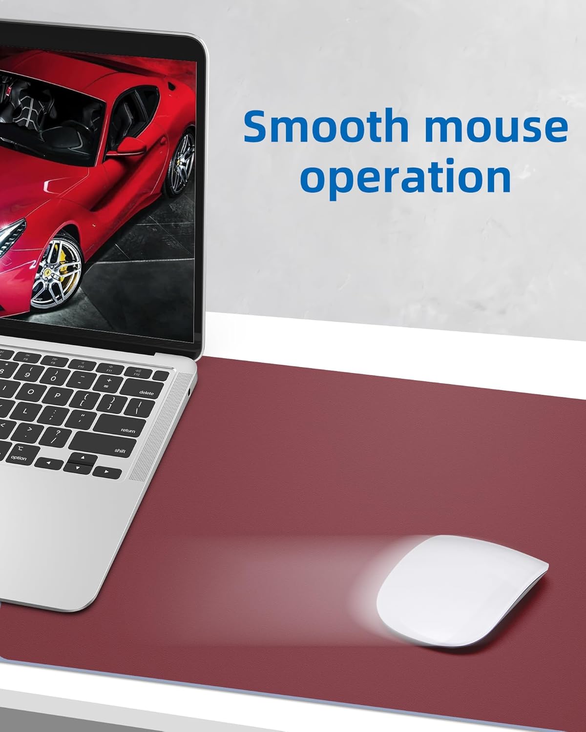AFIING Leather Desk Pad Protector,Mouse Pad,Office Desk Mat, Non-Slip PU Leather Desk Blotter,Large Desk mat,Waterproof Keyboard mat for Office/Home/Decor (Burgundy Red,48"" x 17"")