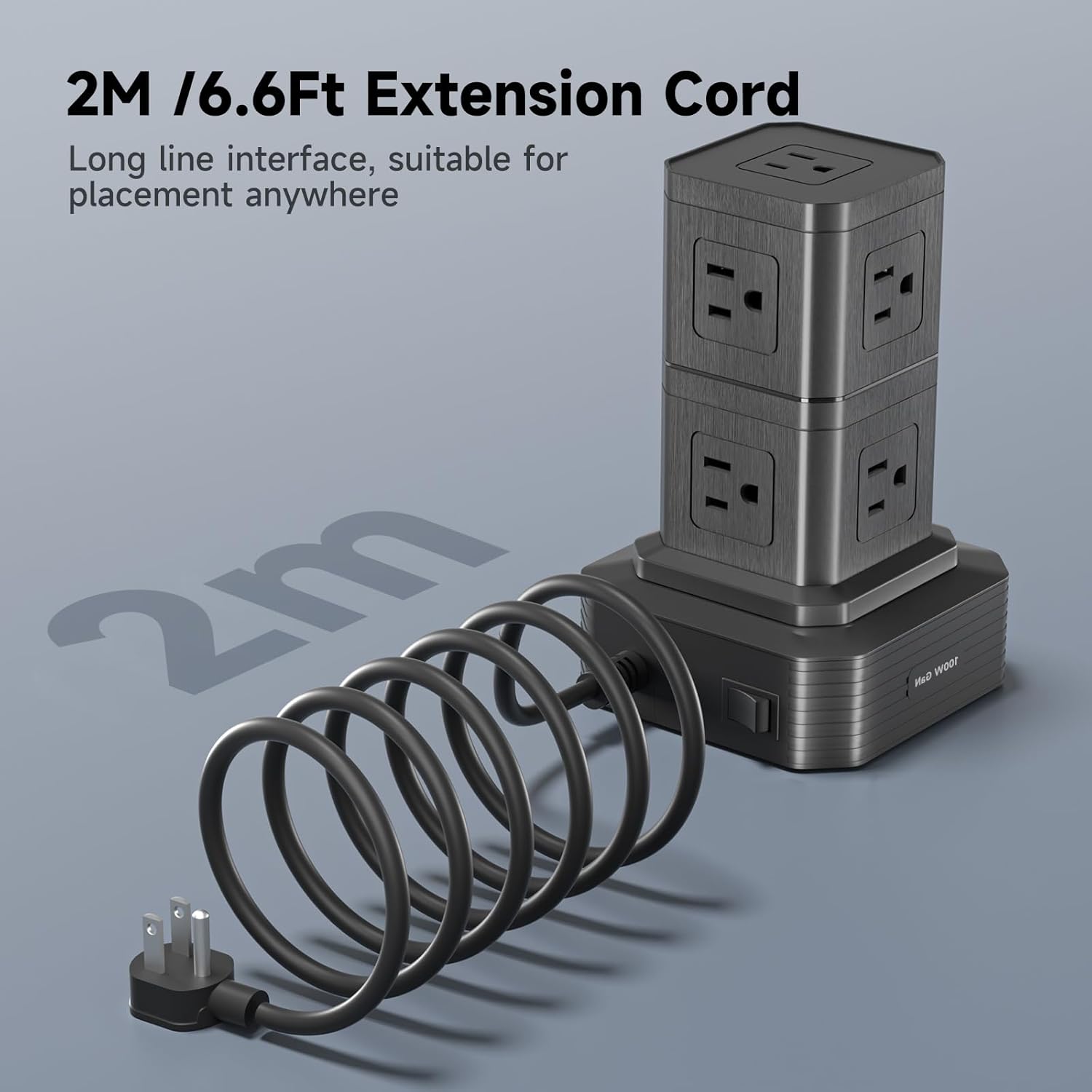 - 【17-in-1 Charging Station】9 AC outlets+4 USB-C Ports+4 USB-A Ports Charging Station Supply power for laptops, smart phones and tablet PCs. Total control switch fingertip can control the power supply, safe, effective, convenient and comfortable. Meet the requirements of high-power wire, the resistance is smaller, the load is reduced, and the conduction is safer, has a unique appearance design. Universal output voltage from 5V to 20V,automatic switching,just plug & go