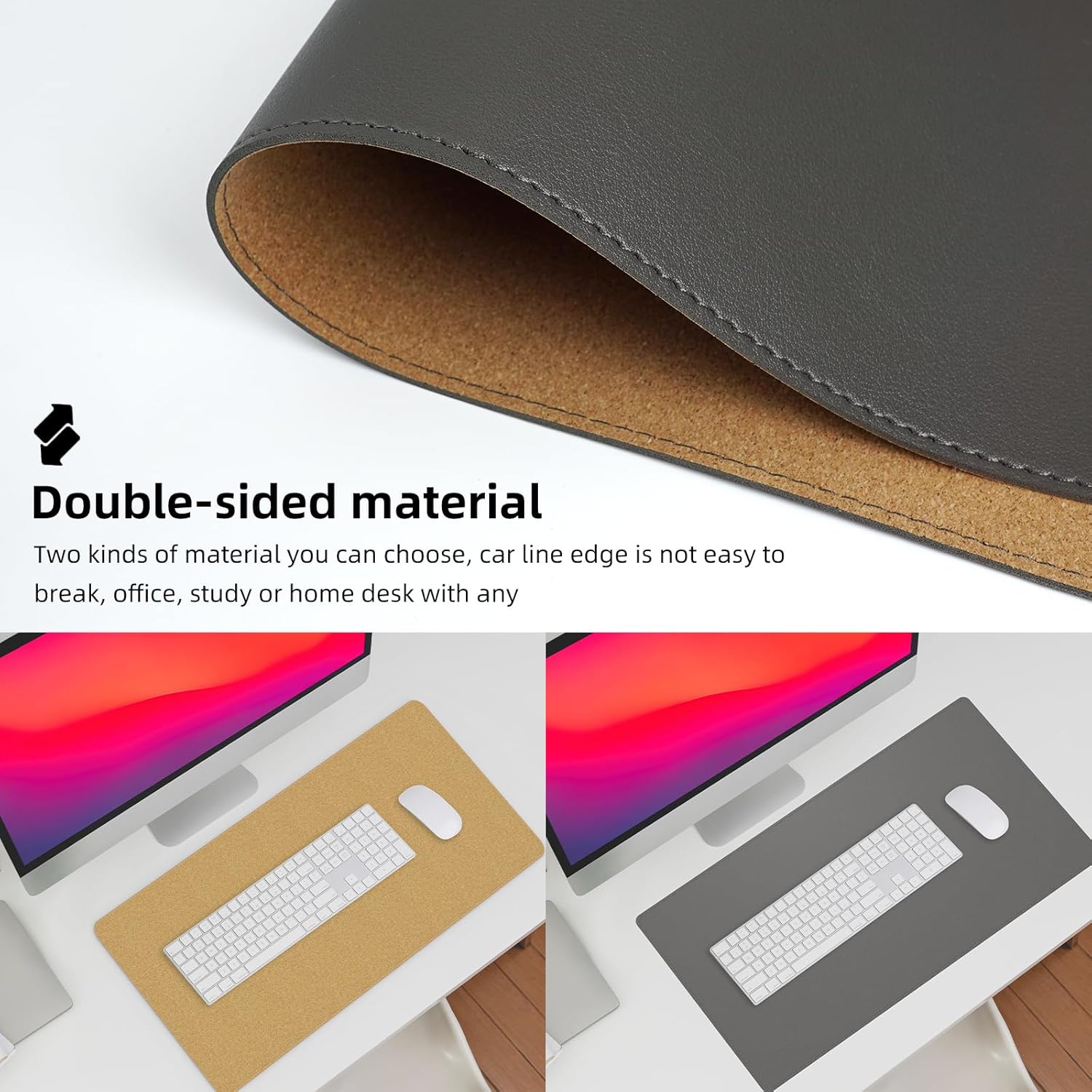 Desk Mat,35.4" x 17" Leather Desk mat,Double-Sided Desk Pad,Desk matt for Desktop,Large Mouse Pad,Office Desk mat,Waterproof Desk Blotter pad for Office&Home(Dark Grey+Cork)