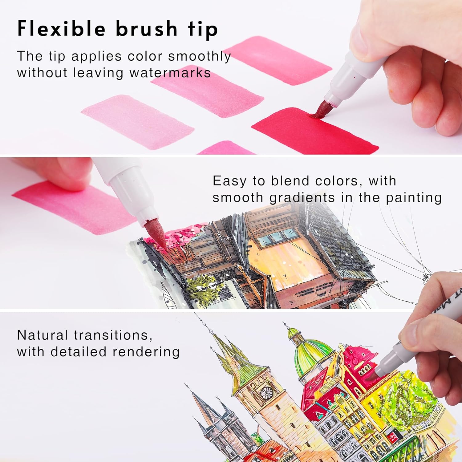 - [ Seamless Blending and Color Mixing ] - High-quality alcohol marker ink blends seamlessly to achieve beautiful coloring effects, Smooth color mixing and blending, Our alcohol-based ink dries quickly, ensuring that your art is always clean, crisp, smudge-free, and ready to display.