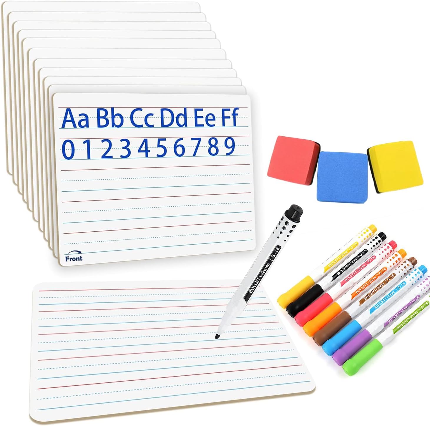 - 【Double Sided Dry Erase Board】The lined whiteboard for kids is perfect for student,and classroom use Use the dry erase boards for kids to practice penmanship or as a dry erase notepad white boards with lines.The LINE side can be used for practicing or learning to write,the BLANK side can be used for various free creations,such as drawing or playing games.