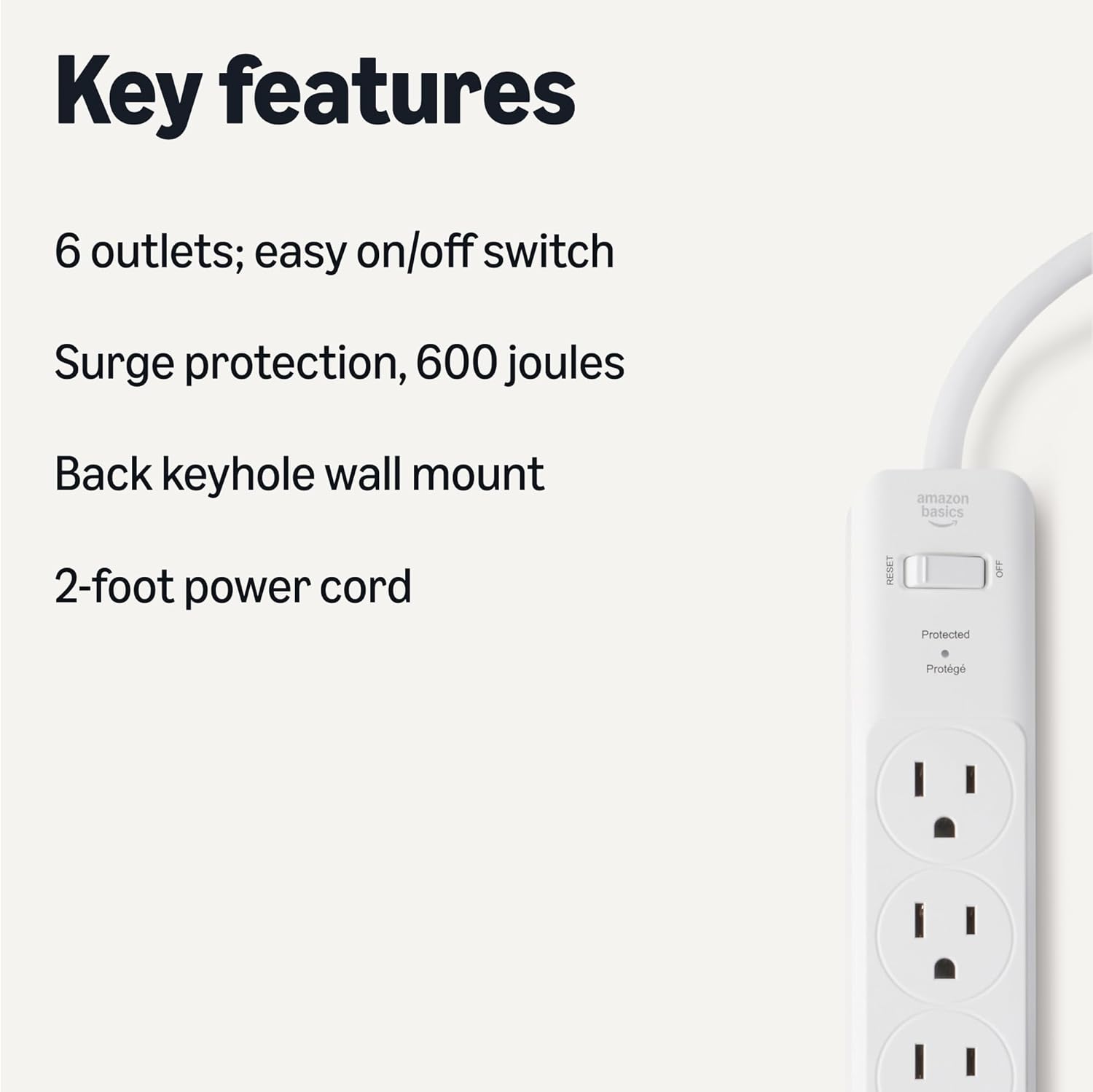 - SURGE PROTECTION: 600 joules 3-line surge protection rating; red LED light indicates active surge protection