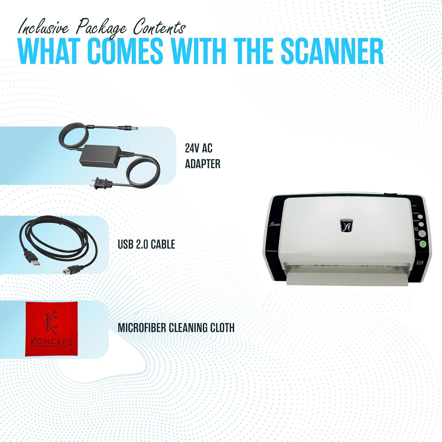 FI-6130Z Fujitsu Duplex Sheet-Fed Receipt Document Scanner with 24V & USB 2.0 Cable (Renewed)