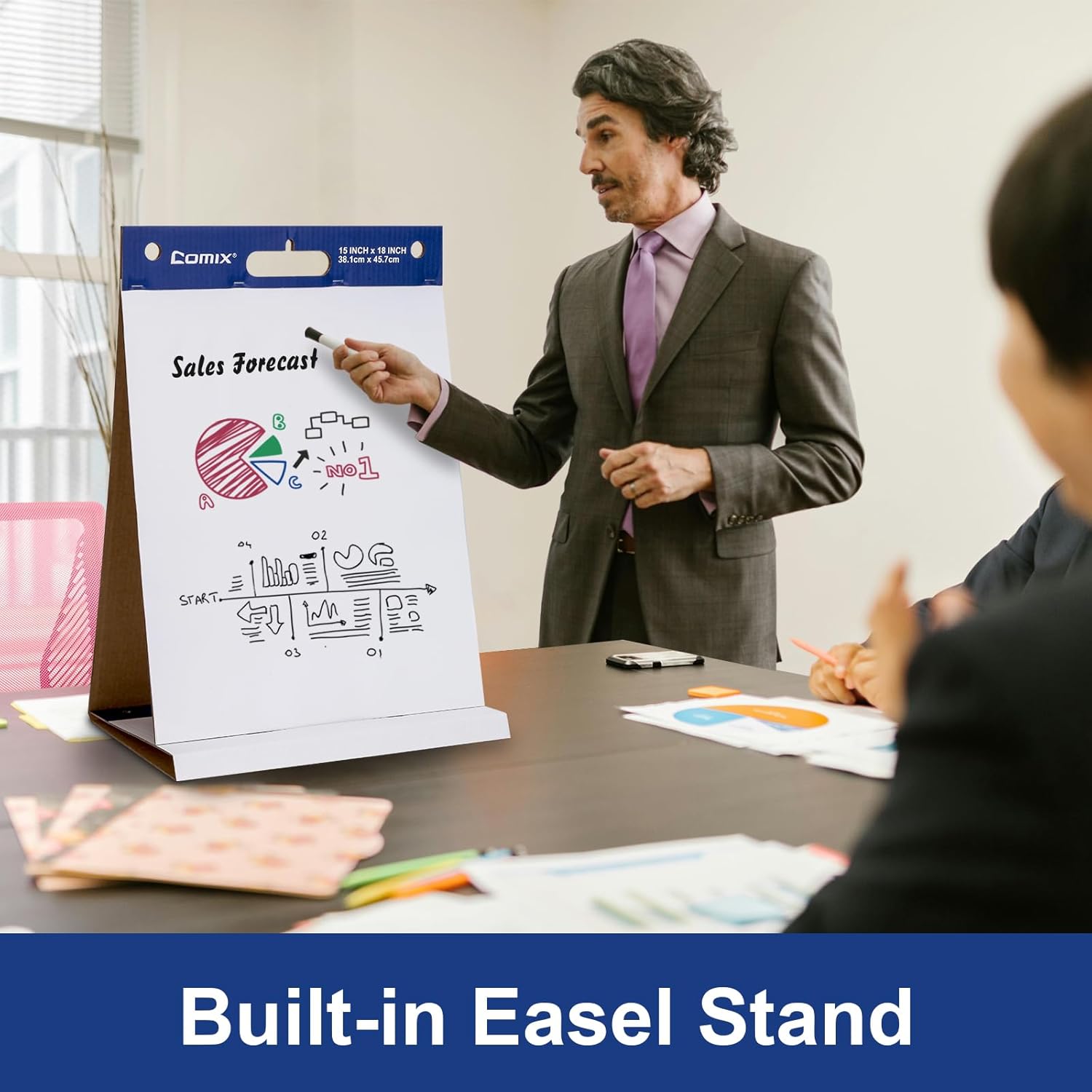 - 【Mini Size Tabletop Chart Paper】 Comix flip chart paper comes in a large size of 15 x 18 inches, 20 Sheets/Pad, 2 Pads/Pack, providing plenty of space for writing and drawing. And the anchor chart is portable and built-in easel stand for use on the go, and other respective occasions.