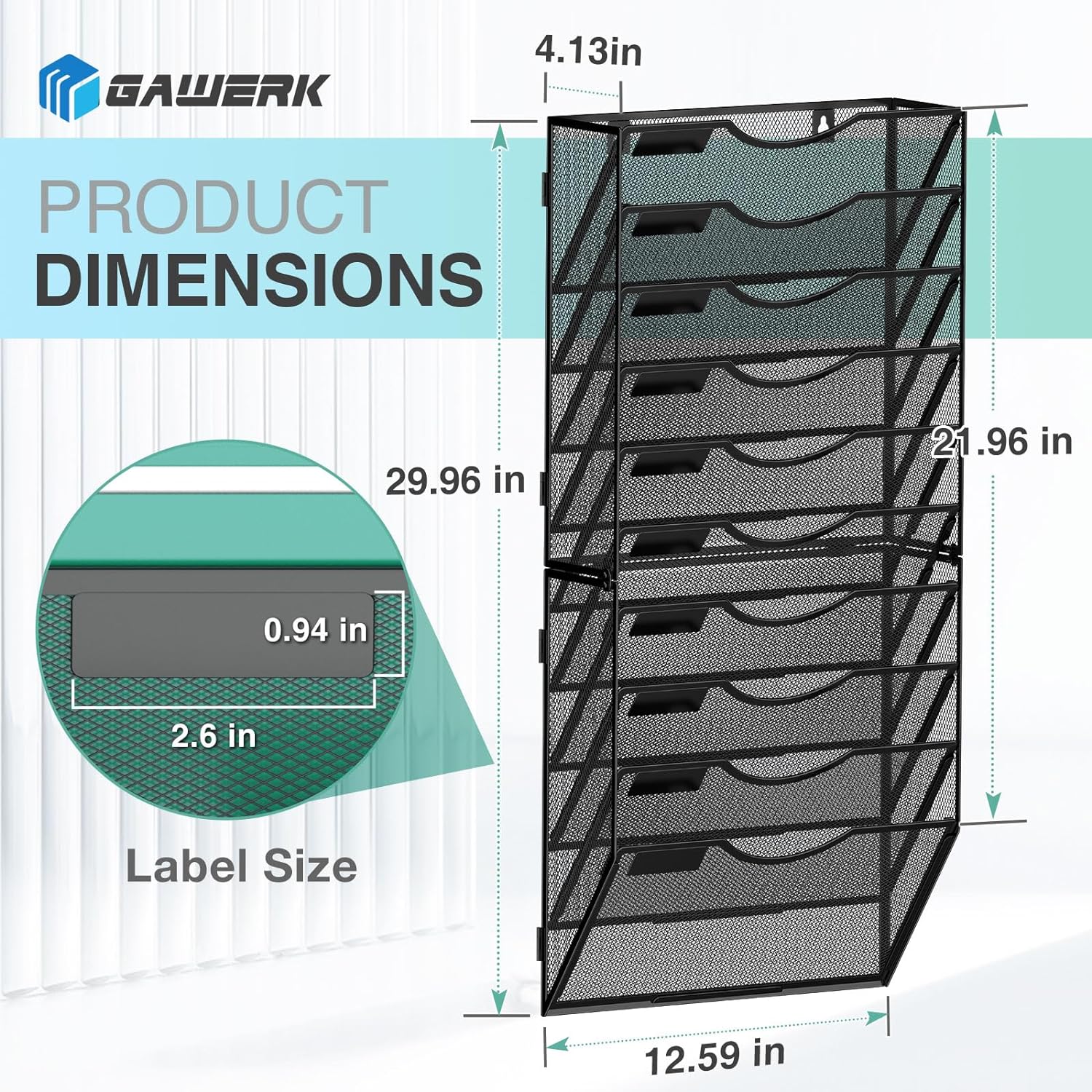 - Easy to Install - This mail organizer wall comes with mounting screws, you only need to drill 2 holes to mount it to the wall. And Our 10-tier wall paper organizer has an elegant look design with upgraded powder coat finish, anti-oxidation and anti-rust, which is enough for many years.