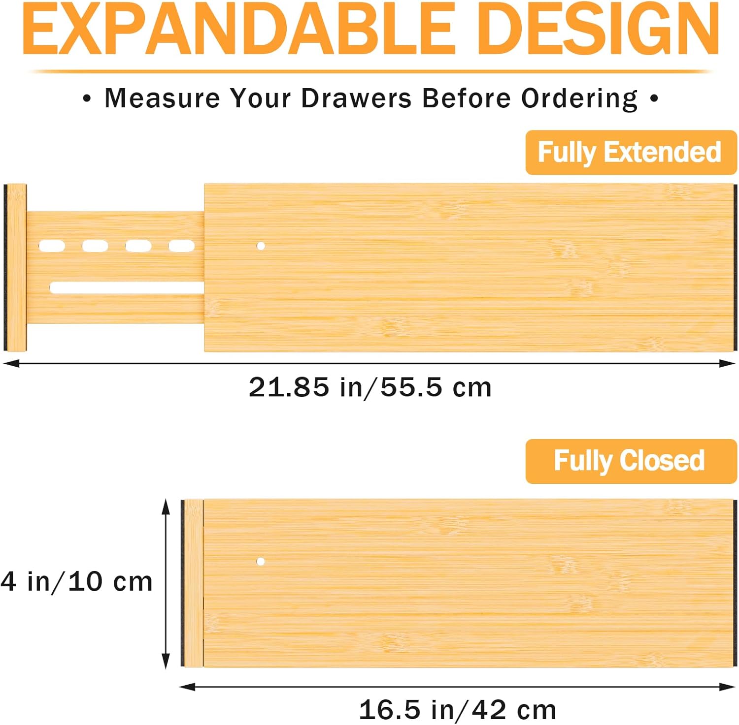 Bamboo Drawer Dividers 4" High, 16.5-22" Adjustable Drawer Organizers for Clothes,Expandable Dresser Separators in Bedroom/Kitchen/Bathroom/Office Organization and Storage,4 Pack