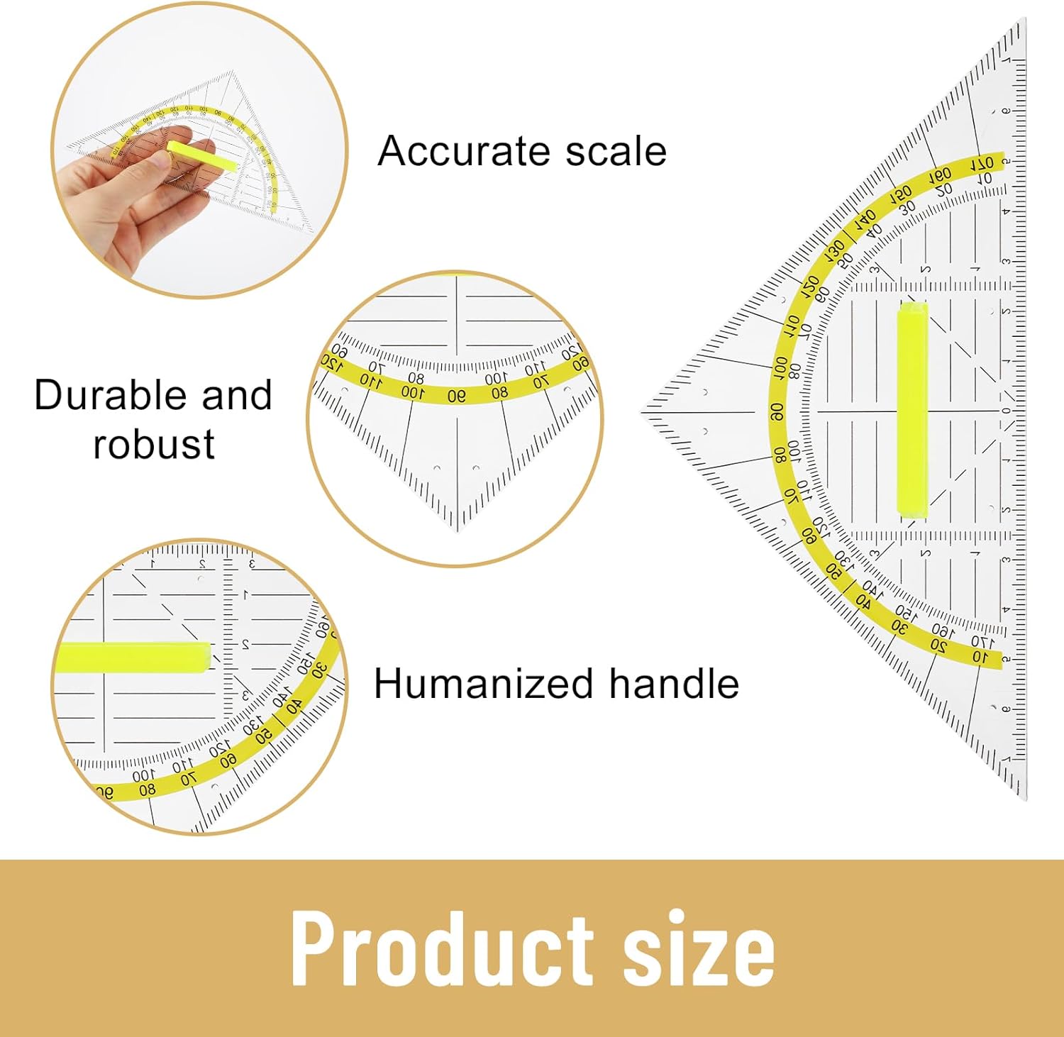 - 【Comprehensive Set】Our package contains 12 triangle ruler sets, each meticulously equipped with a stabilizer for effortless usage. With versatility and convenience in mind, this set meets your needs comprehensively. Plus, its shareability makes collaborating with classmates and friends easy, fostering a productive environment wherever you go.