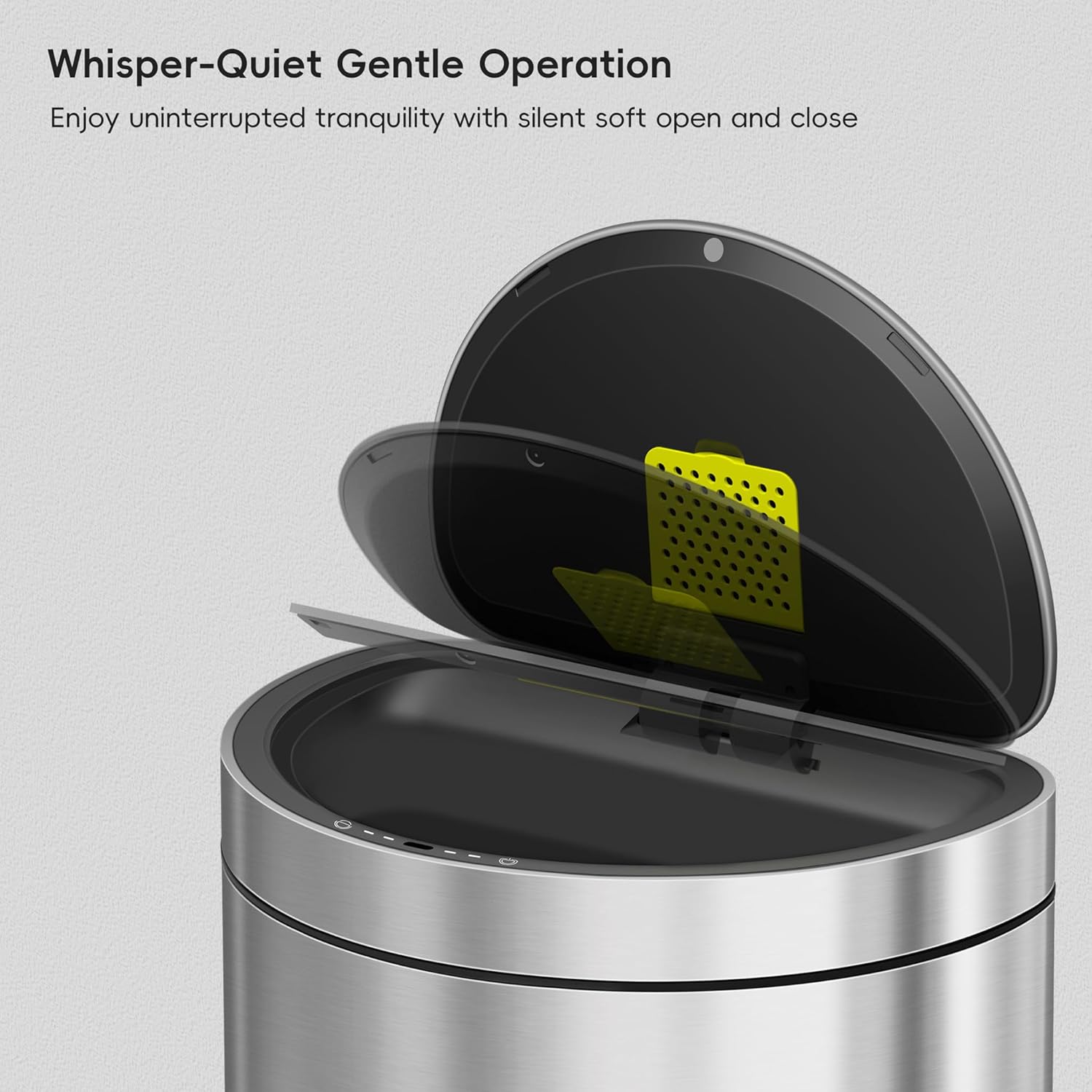 - ULTRA-RESPONSIVE AND WHISPER-QUIET: Experience with EKO touchless trash cans, it features a lightning-fast, 0.2 second responsive openings, and soft-closing mechanisms, followed by gentle, 5-second soft closures.
