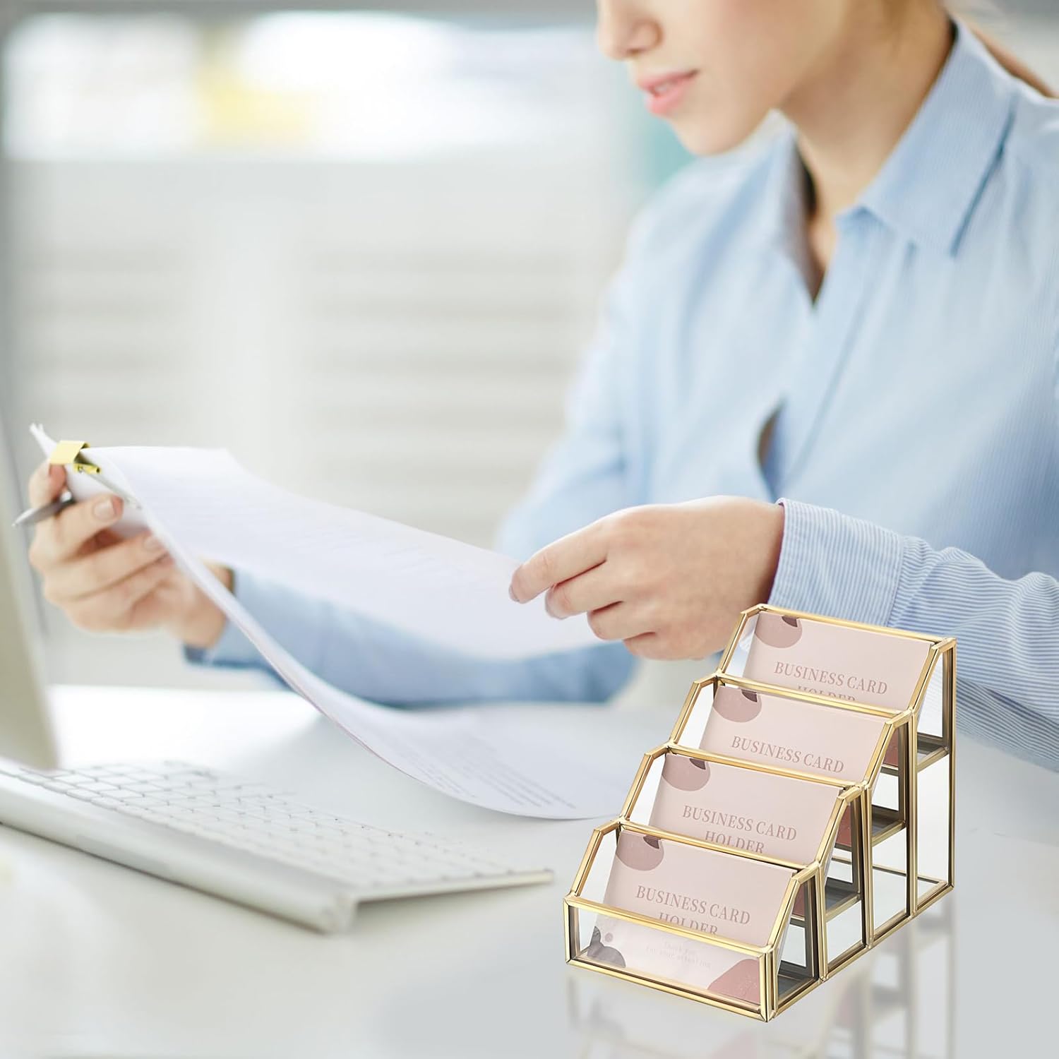 - Keep Your Business Card In One Place - 4 slots design,with this glass name card stand, you can prevent losing your business cards anywhere,it keeps your card in order and your desk tidy