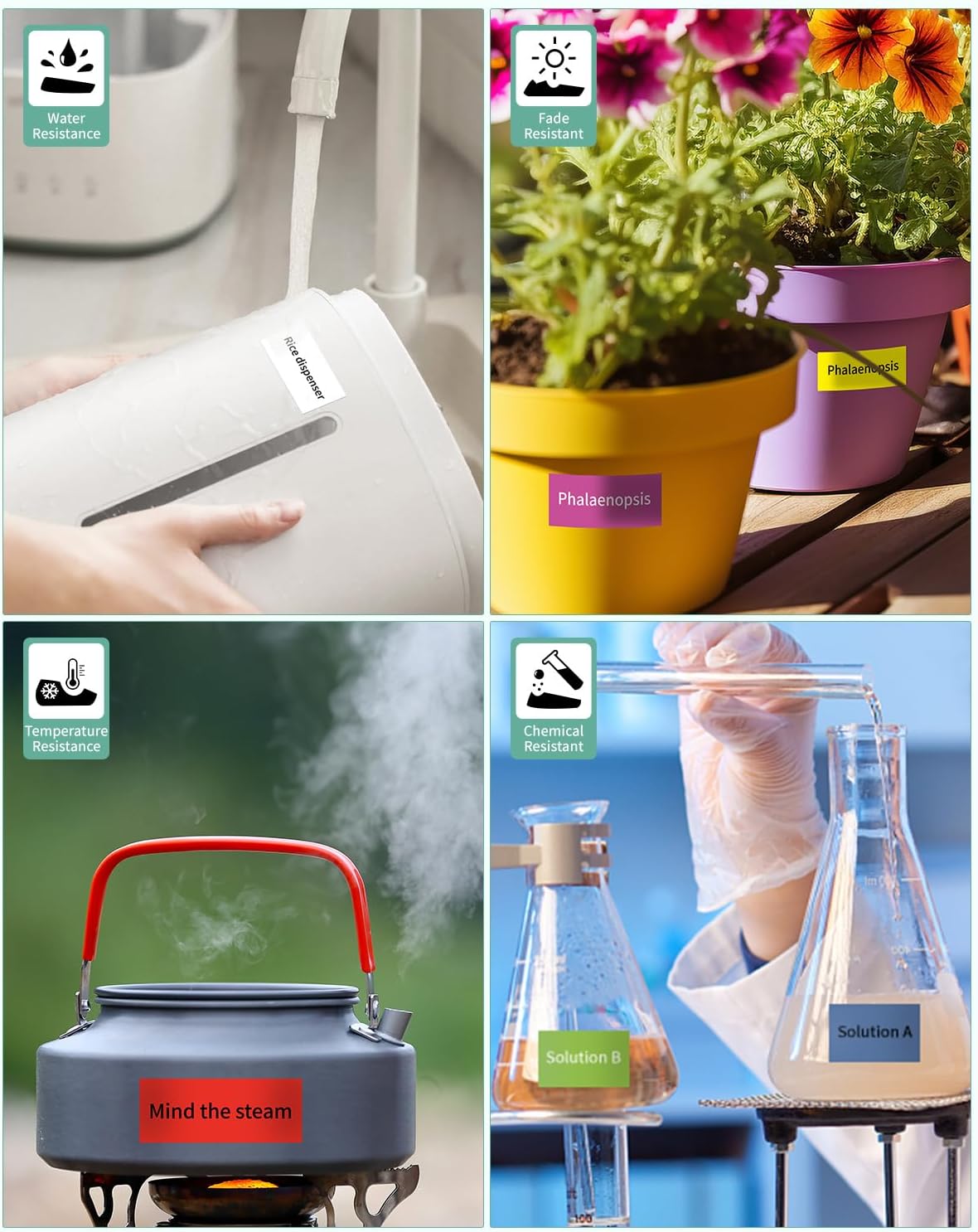 - Standard Laminated Tape: The 24mm laminated tz tape is adhesion, resistant, temperature resistant, water resistant, chemical resistant, fade resistant, UV resistant, abrasion resistant, grease resistant, grime resistant, and corrosion resistant. It is used for indoor or outdoor, even in harsh weather conditions