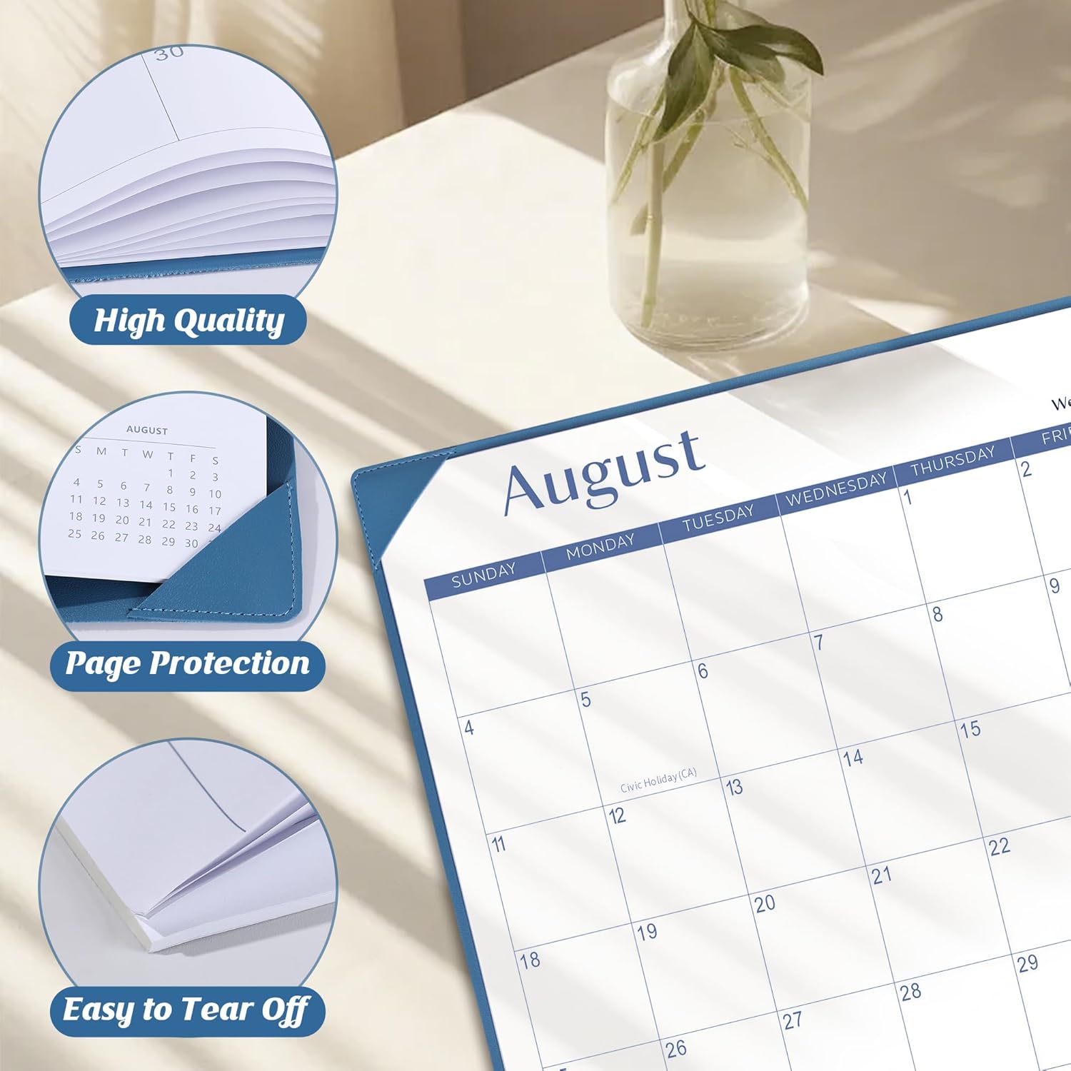 - 📔【Unique Design】The top of this table calendar cover has a transparent protective film that can resist damage from water stains and dust efficiently, keeping your plans clean and tidy for the long term. Bottom desktop mat is made of double-layer PU leather, which is non slip and dirt resistant, protecting your calendar from scratches and stains.