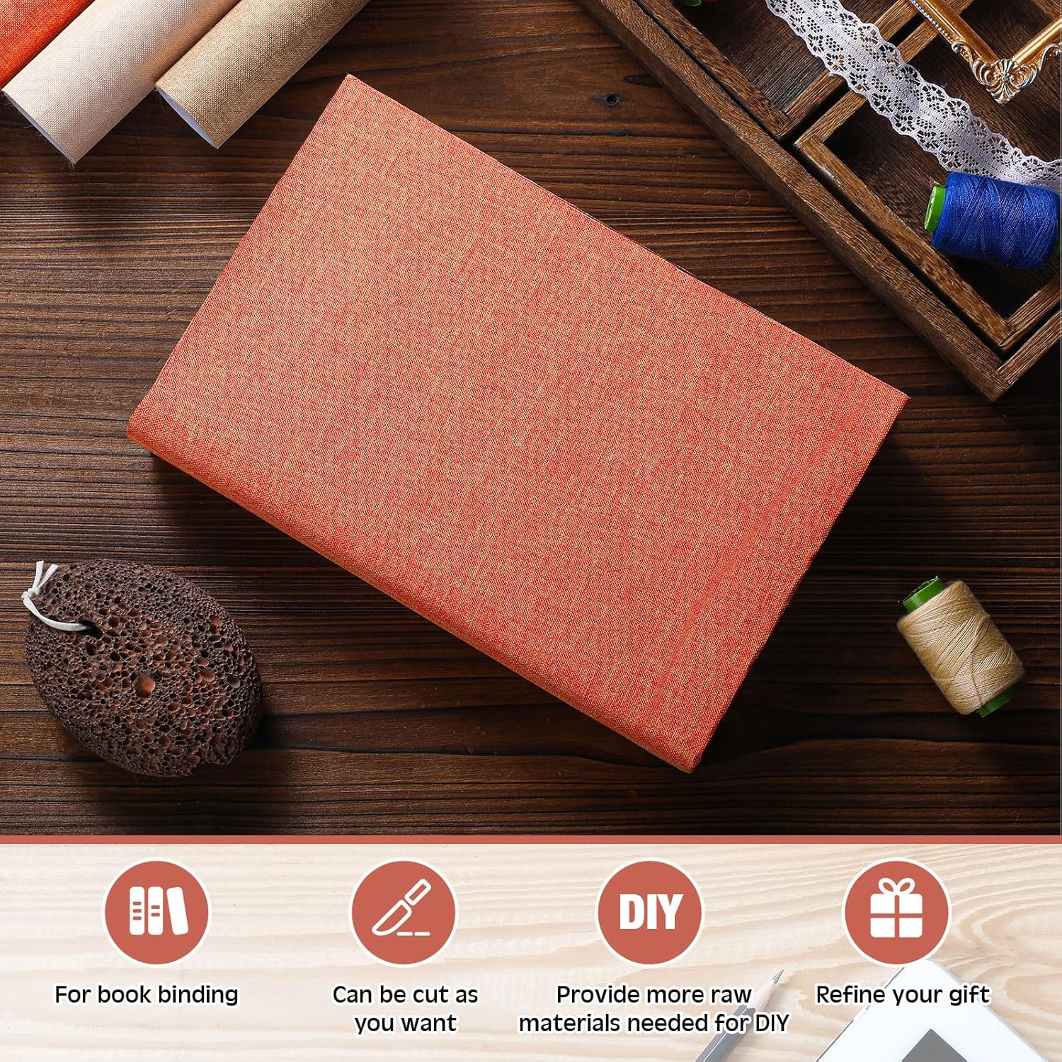 - Vibrant Colors: our bookbinding cover cloth comes in a range of vibrant and appealing colors like Beige, Khaki, orange, and brown; These different colors offer added appeal and enable you to customize your binding based on your tastes or to match your collection, thus elevating the beauty of your reading space