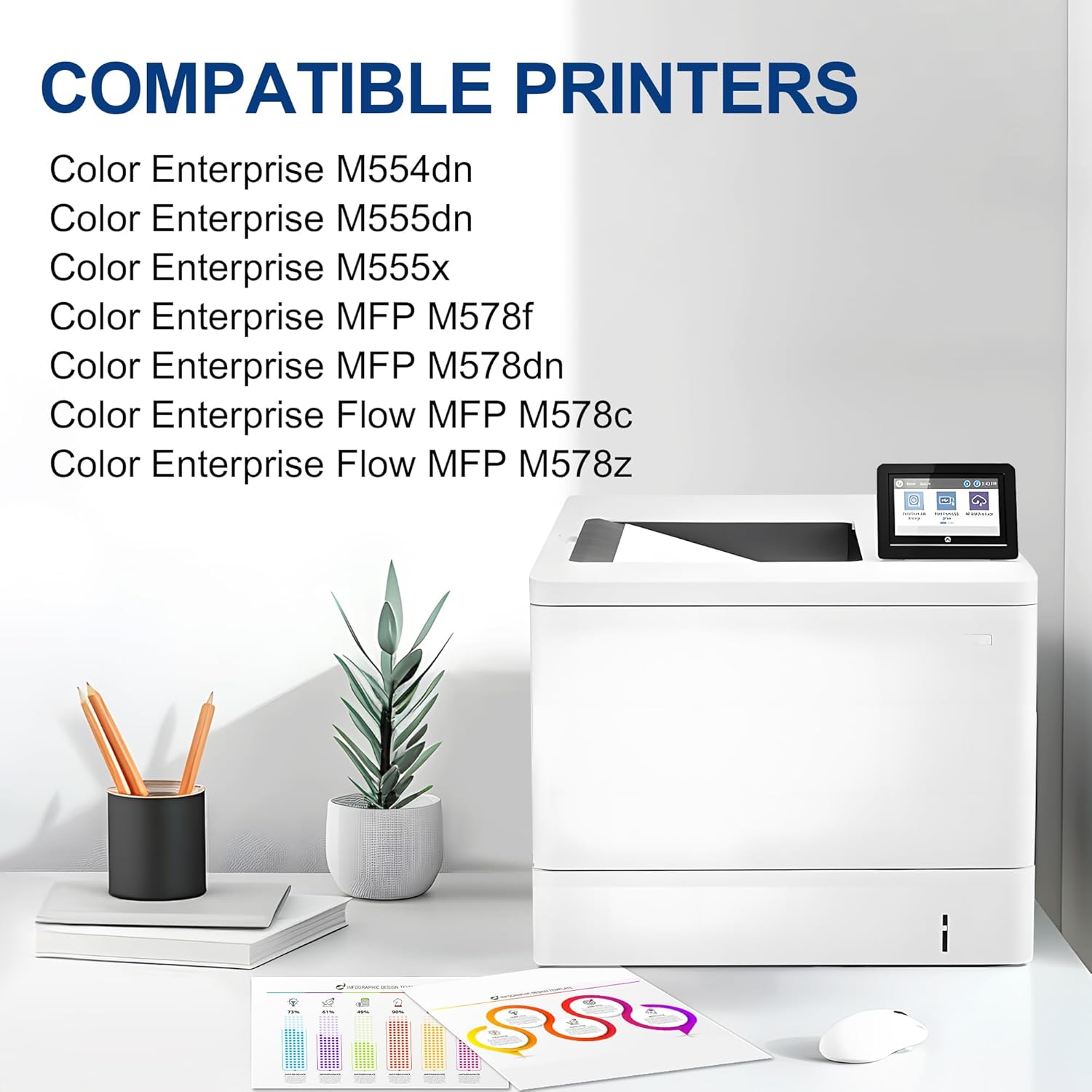 - Compatible Printers: the 4 pack 212A toner cartridge are compatible for printers Enterprise Flow MFP M578c M578z Printer and Color Enterprise M555dn M554dn M555x MFP M578f M578dn