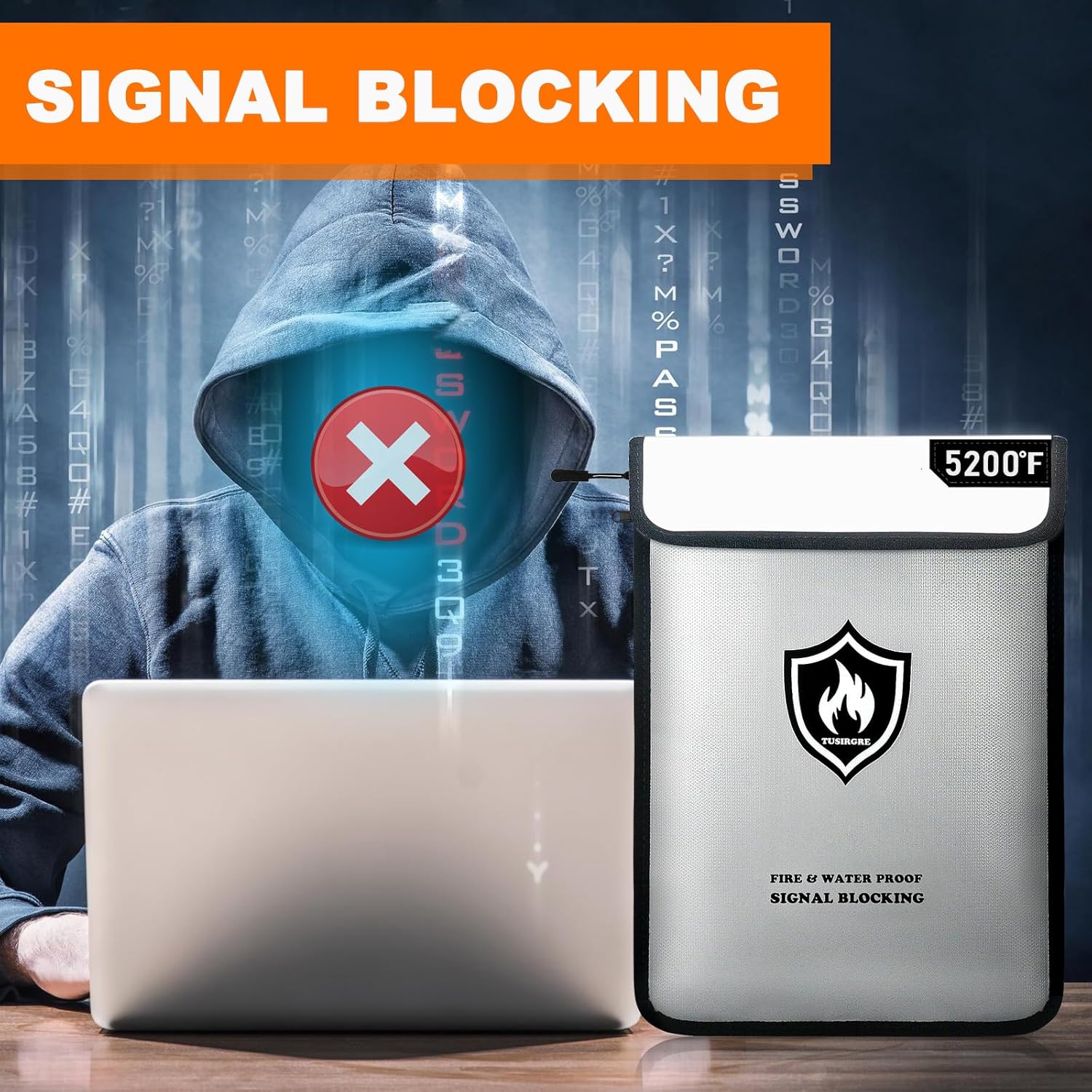 - Signal Shielding: The super shielding cloth inside the fireproof document bag can effectively shield medium and high frequency electromagnetism, mobile phone signals, GPS, RFID and radio signals