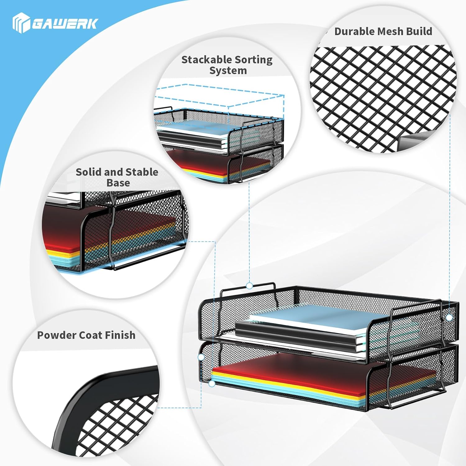 - ✏️ 【Stackable Design】 Stackable trays help maximize desk space while keeping documents within easy reach.