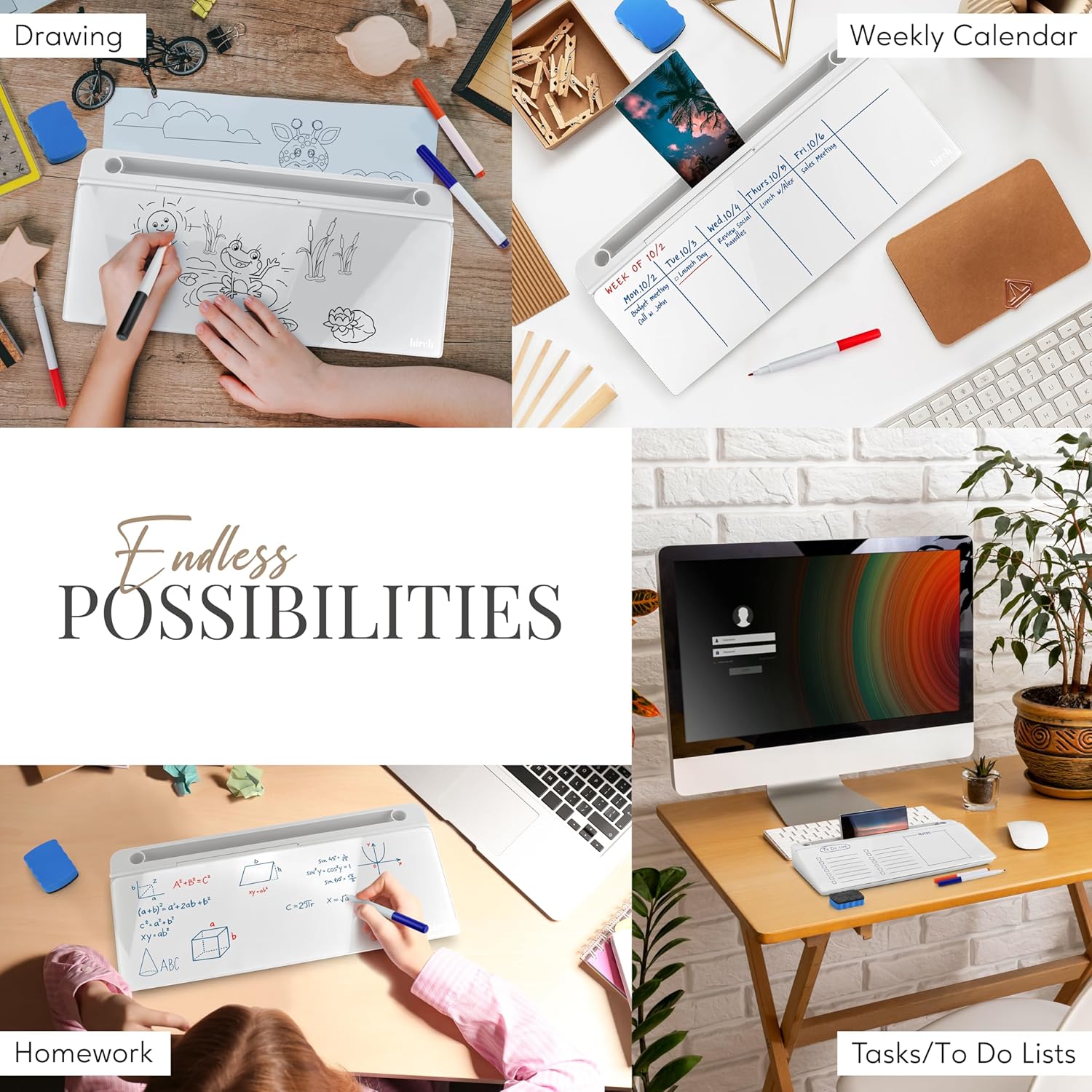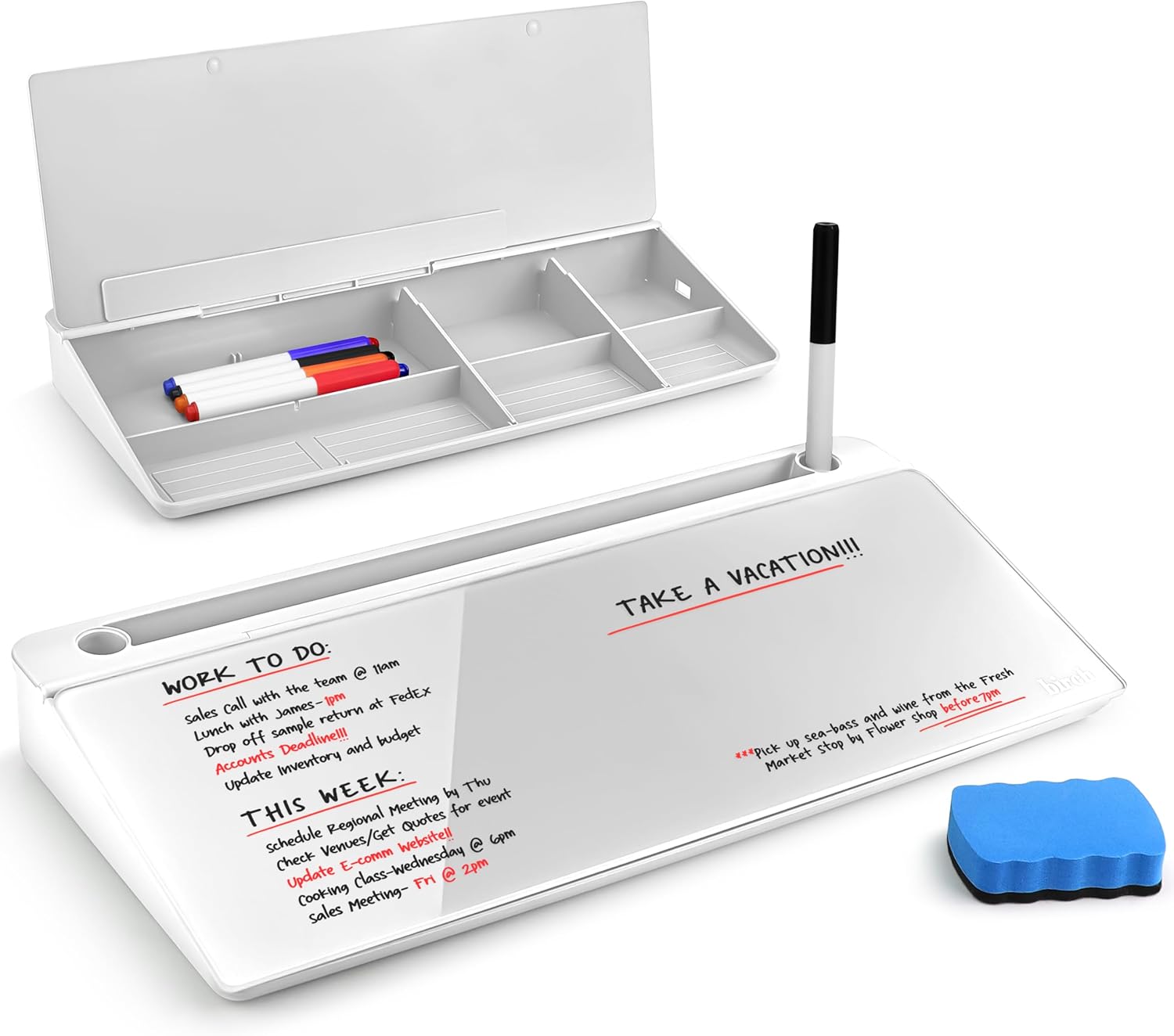 Birch Desktop Whiteboard with Storage & Multiple Markers Surface Desktop Glass Dry Erase Board Desk Top White Board Dry Erase Notepad Desk White Board Tabletop Desk Whiteboard (Cloud)