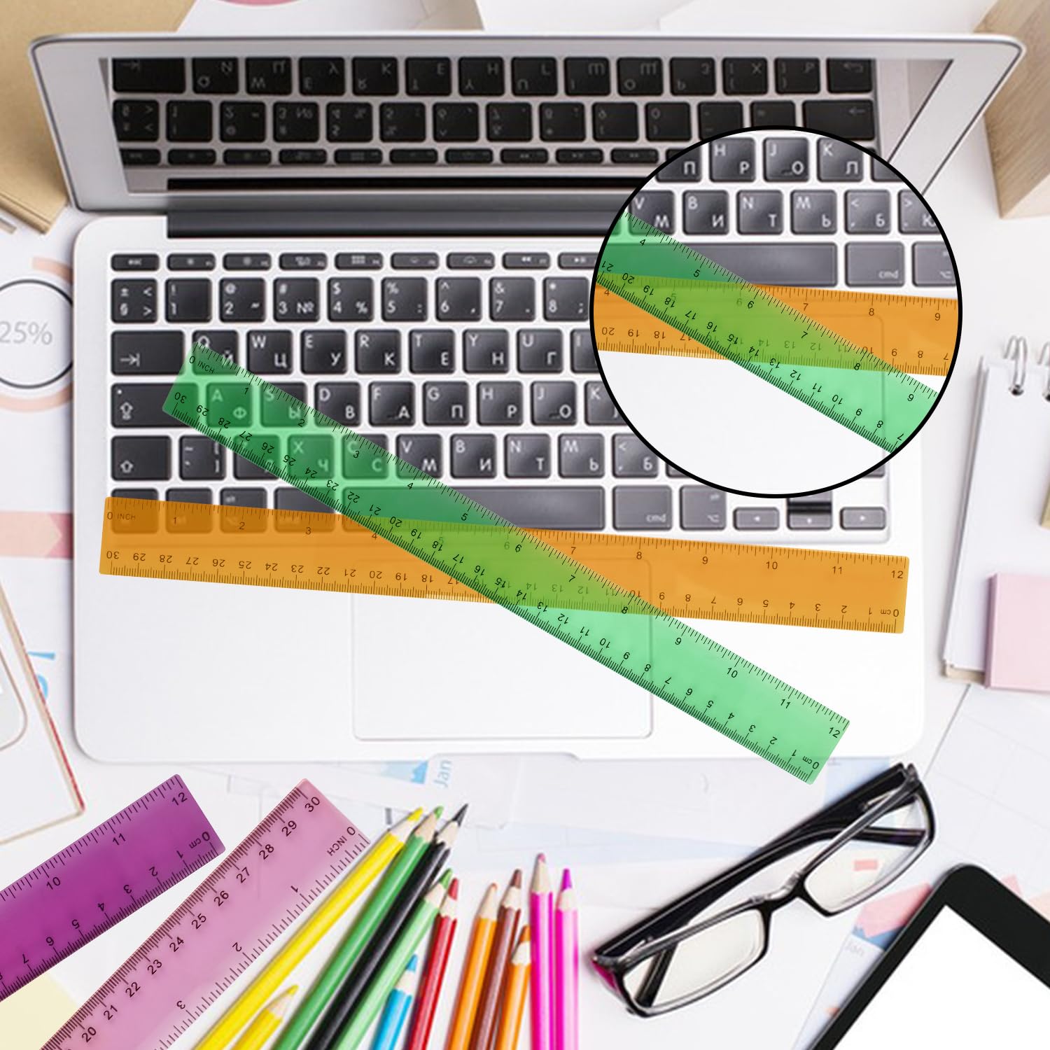 - 【Durable & Safe】: KUKLIPJIM's rulers are made from robust, flexible plastic with non-sharp edges, ensuring safety for you.Colored translucent plastic is easily visible during operation, making the measurement results clear at a glance.