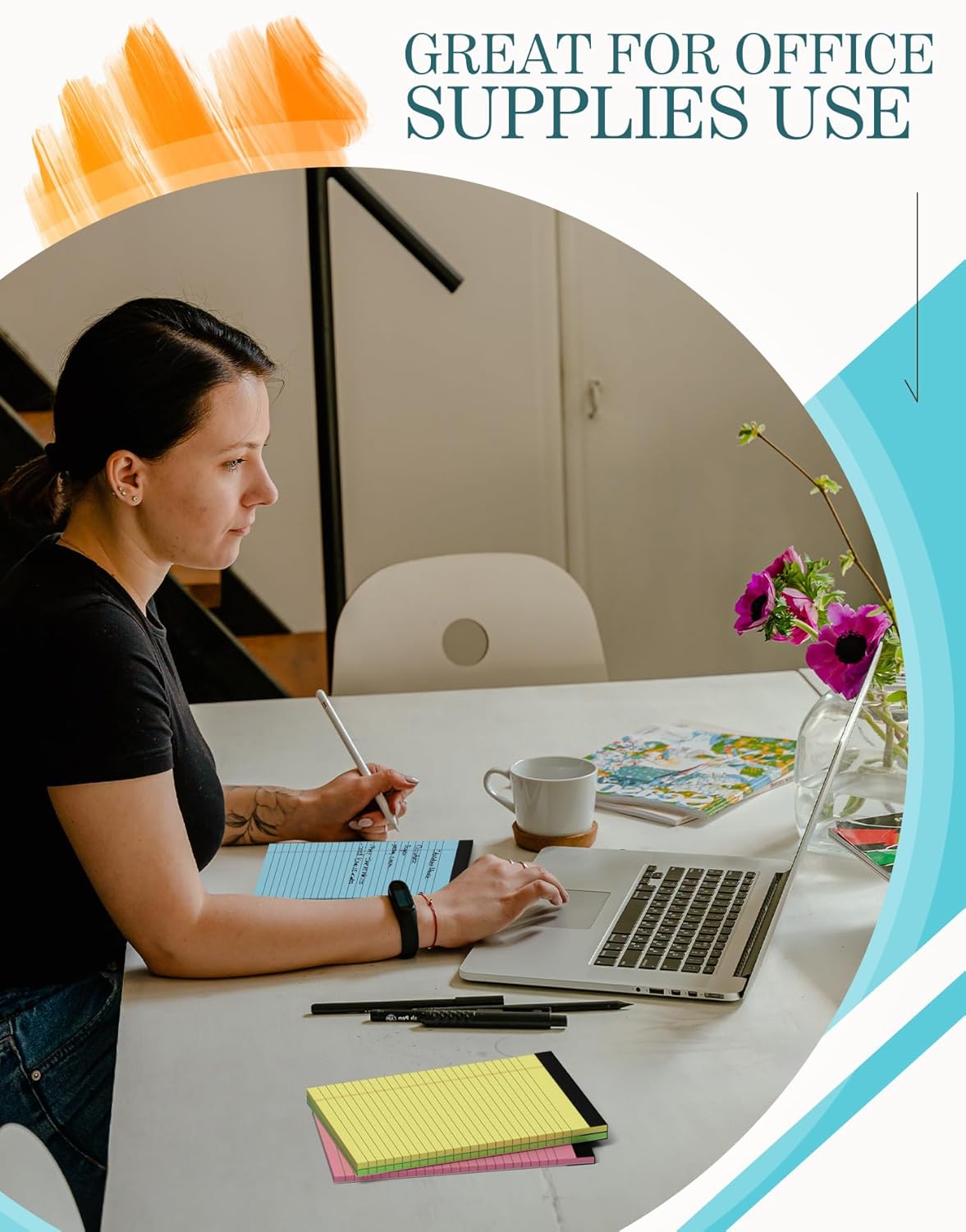 - 【LINED LEGAL PADS】- Each colored note pads measures 5” x 8" and contains 30 sheets per legal pad, which perfect for writing notes, letters, thoughts, reminders lists and more. Quality lined paper pads both sides with 9/32" college ruled lines lines format provides plenty of space for your notes. Colored legal pads 5x8 improve the efficiency of your note-taking.