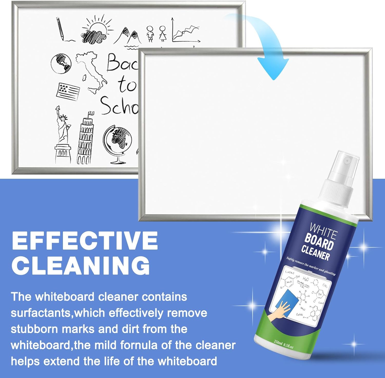 - Effective and Practical: dry erase board cleaner contains surfactants that can effectively remove stubborn marks on the whiteboard; Equipped with a cloth, easy to wipe, not easy to dirty your hands; Mild materials are also less likely to hurt the blackboard