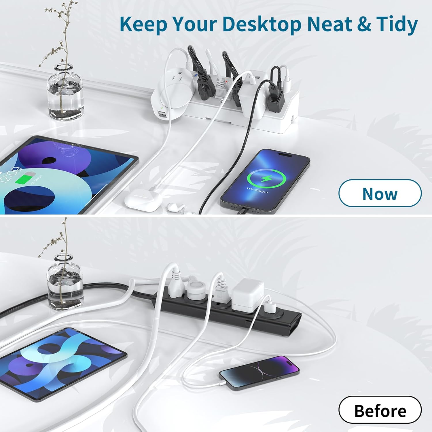 - 【Home Office Must Haves】: The Desktop Mount Surge Protector is tailored to provide home office must-haves, offering a total 40W fast charging station with 2 PD 20W USB-C ports,4 USB A ports, 6 spaced outlets,10FT flat plug to protect your devices from overcharging, and overloads.1800 Joules ensure your electricity safety.
