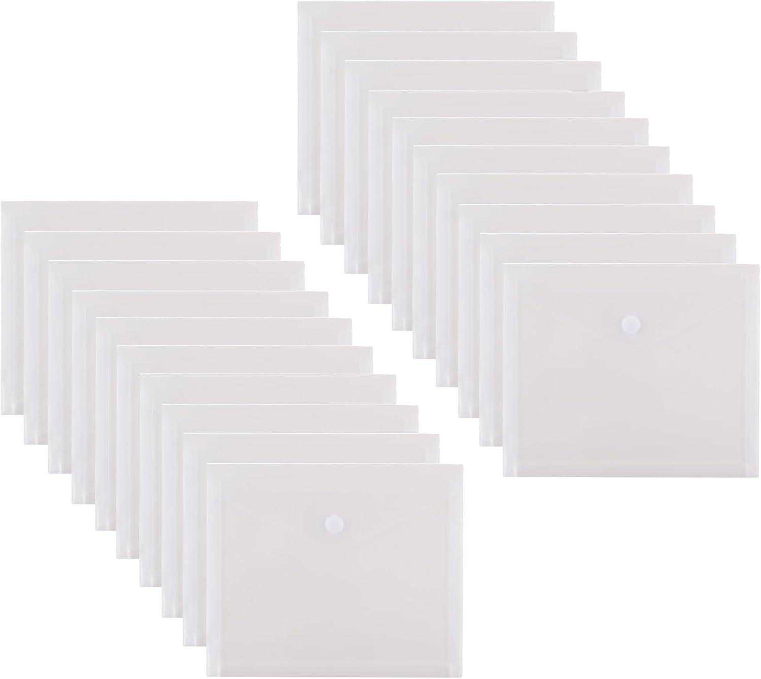 8.5 x 11 Letter Sized Clear Plastic Envelopes with Expanding Gusset Document File Storage Holder 20 Pack Hook Loop Closure