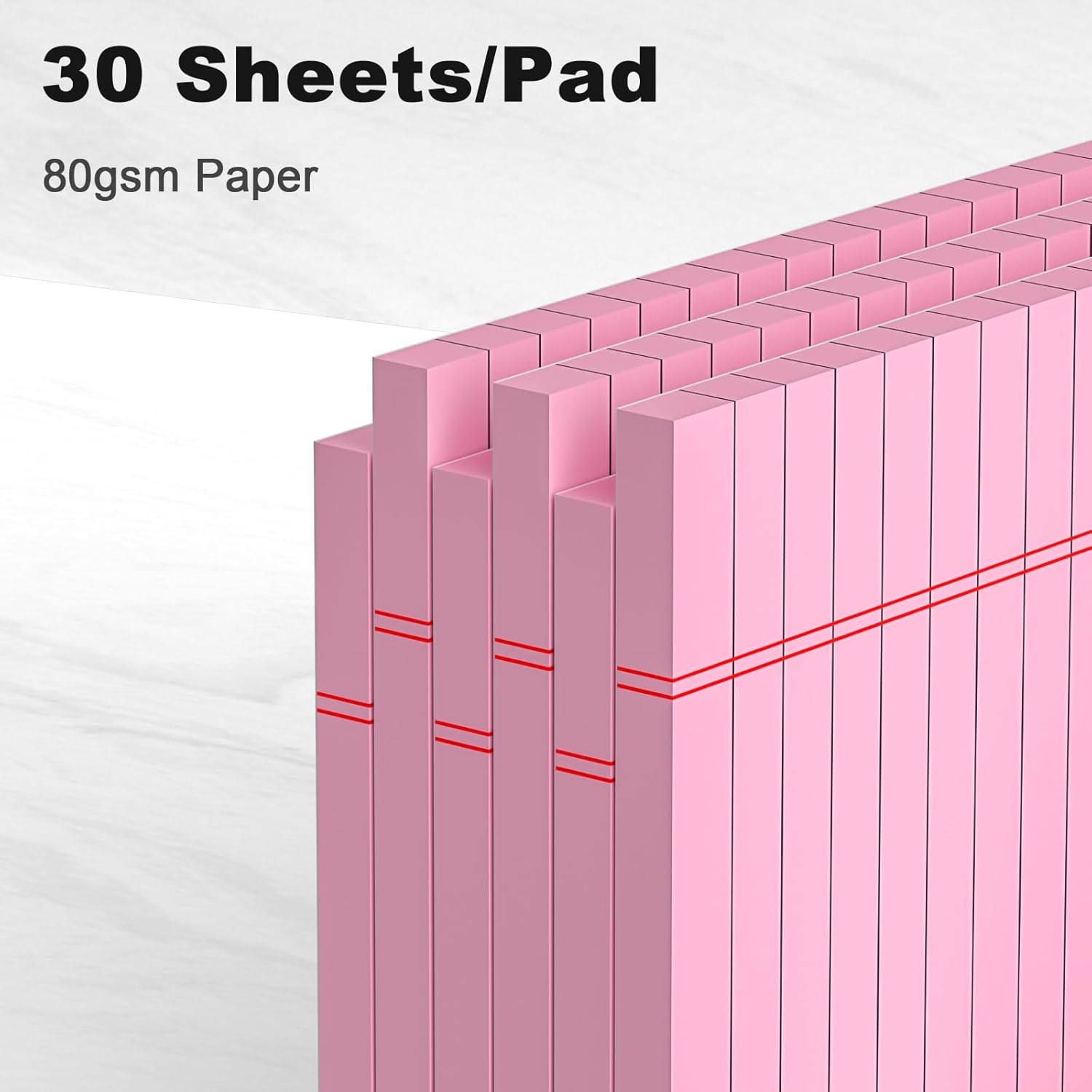 - Pink colored Legal Pads 5 x 8 Inch are perfect for students, teachers, and professionals. Made with premium 80gsm thick paper, these notepads provide a luxurious writing experience. The colored paper resists ink bleeding, while the black lines and double red margin lines offer ample space for your notes.