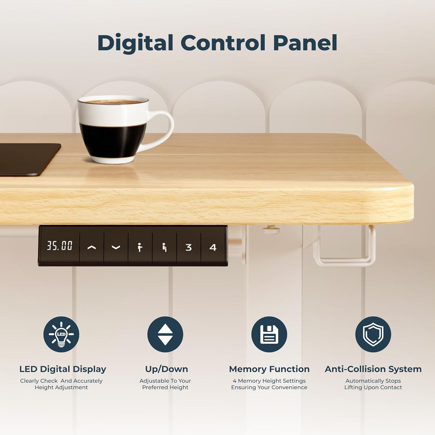 - Adaptable Memory Mechanism: Our sit stand desk boasts a memory height system with the controller that can be pre-set to 3 different heights, giving you the convenience to switch to your preferred height settings with just a click.