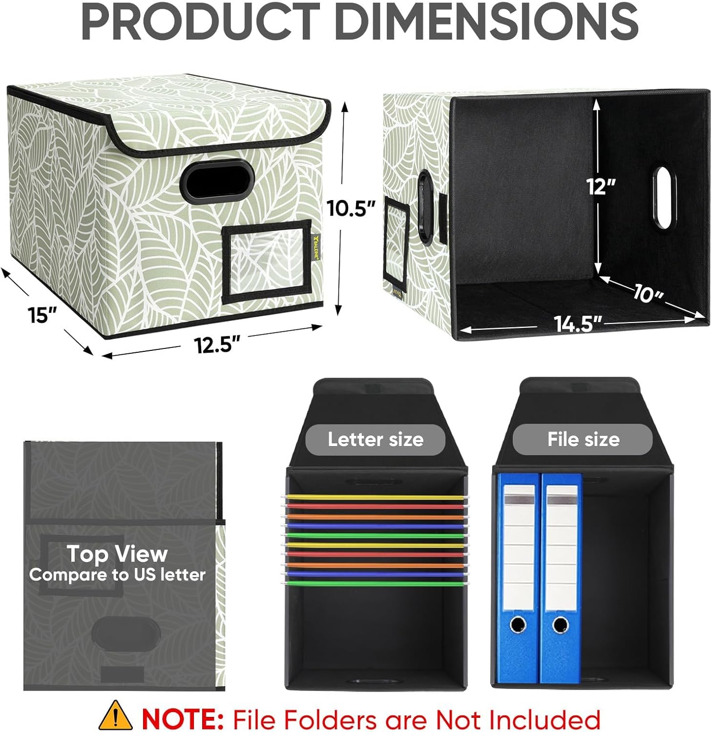 - [OPTIMIZED DESIGN] Designed with convenience in mind, our file storage box helps to elevate your efficiency and organization. The transparent label slot allows for quick identification of the contents stored inside the box. The collapsible design and sturdy handles ensure effortless storage and movement, making it convenient and easy to use.