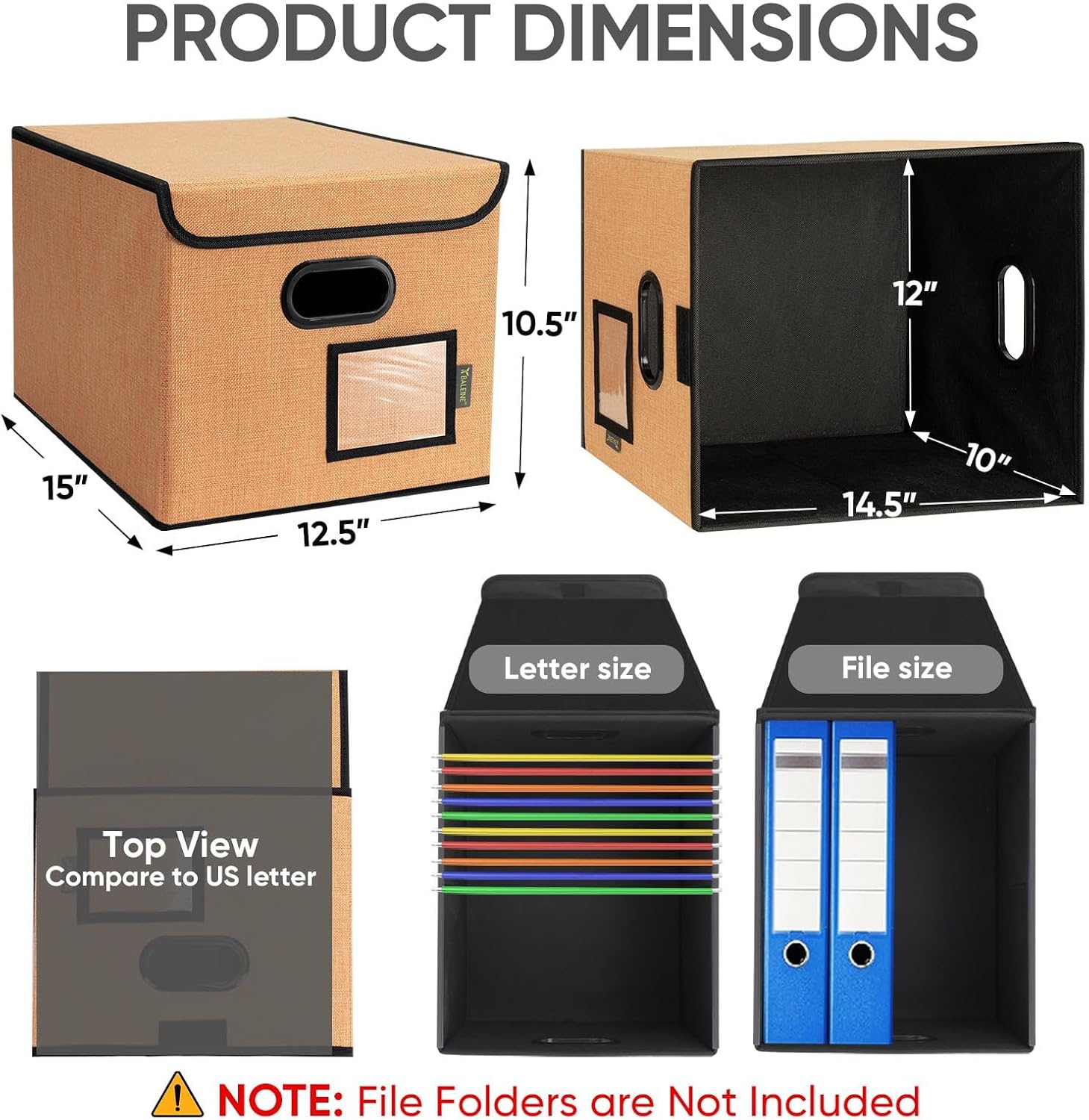 - [DURABLE MATERIAL] The outer layer of our filing box is crafted from high-quality polyester fabric and reinforced with thick cardboard in the middle. This construction ensures that the box maintains its shape and provides better bearing capacity for important documents and files. Its textured appearance can also serve as a stylish decorative element in any office or home.