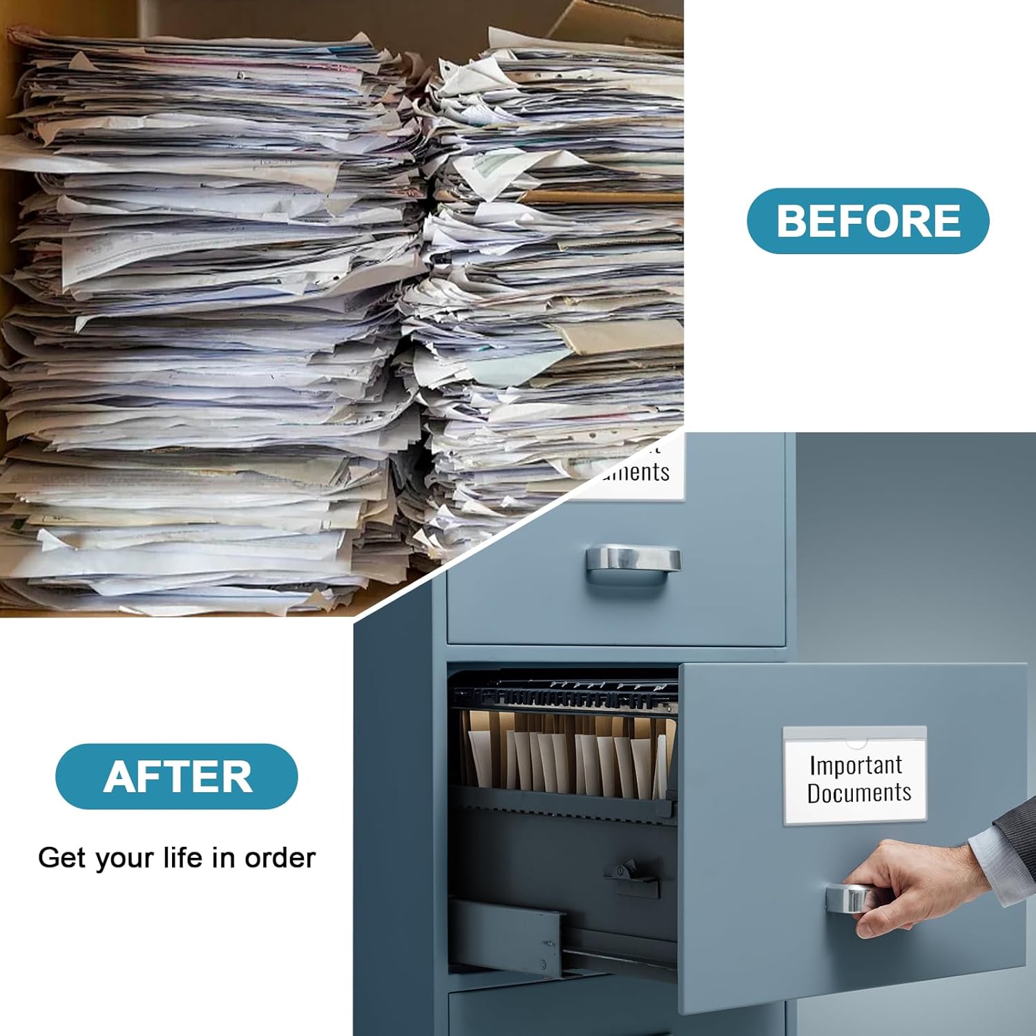 - High Quality Material: Adhesive label pockets is made of premium PVC material, which is transparent and clear, easy to read, and won't crack or turn yellow after long-term use