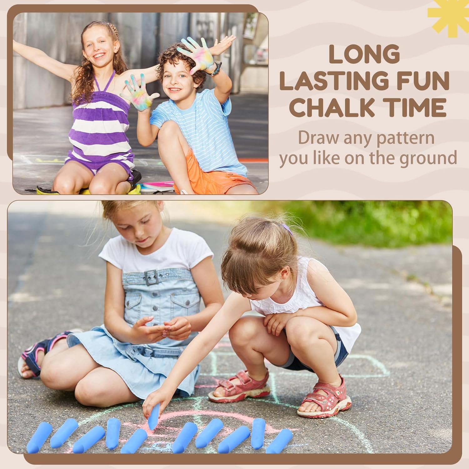 - Widely Applicable: you can use these kids sidewalk chalks on various occasions, for drawing, painting, etc., and you can use them to mark the buildings, to DIY, to decorate your wall, to make some crafts, which will bring you a lot of fun