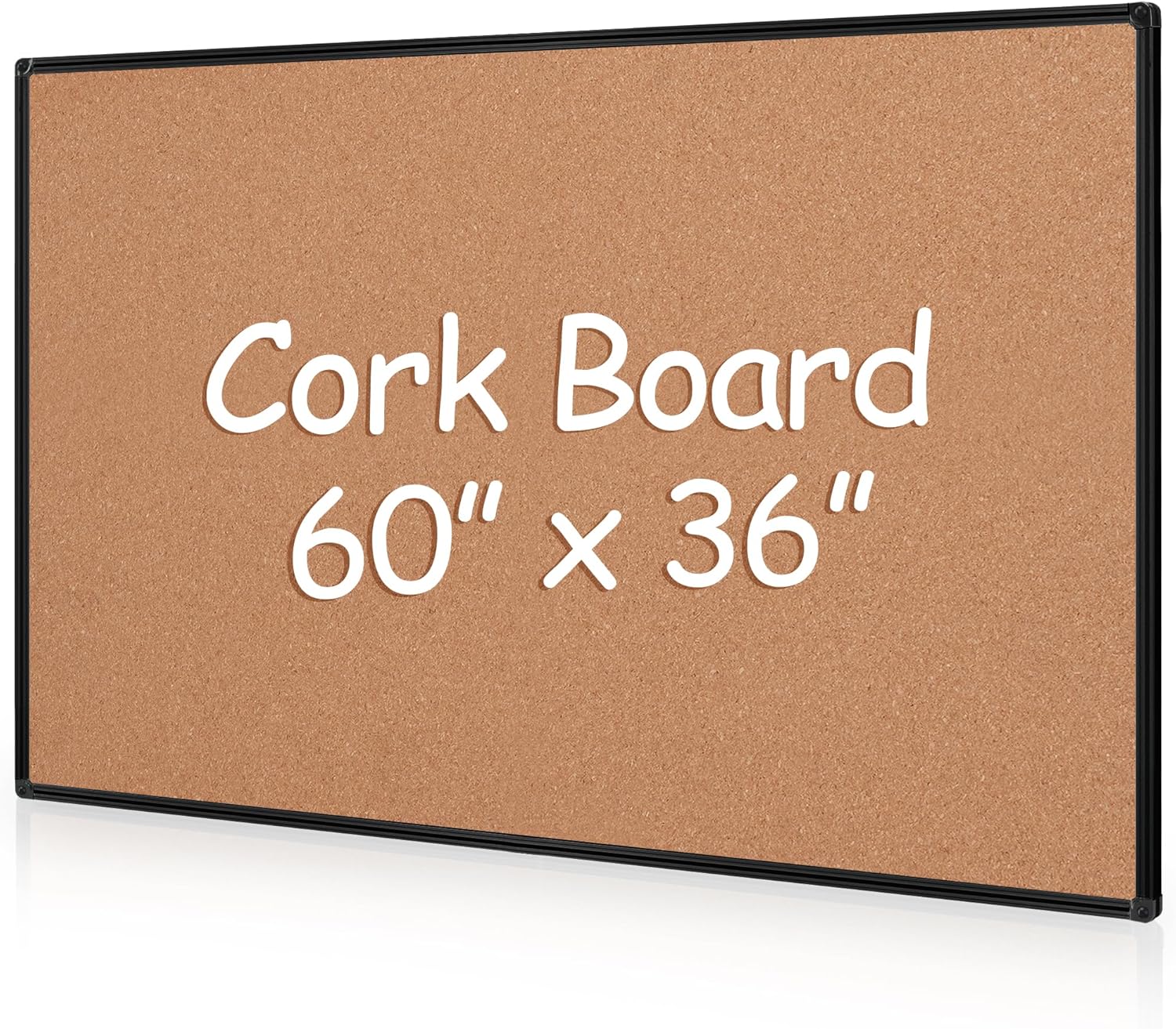 Board2by Extra Large Cork Bulletin Board 60" X 36", Black Aluminum Framed 5'x3' Corkboard for Wall, Wall Mounted Notice Pin Board with 18 Push Pins for School, Home & Office
