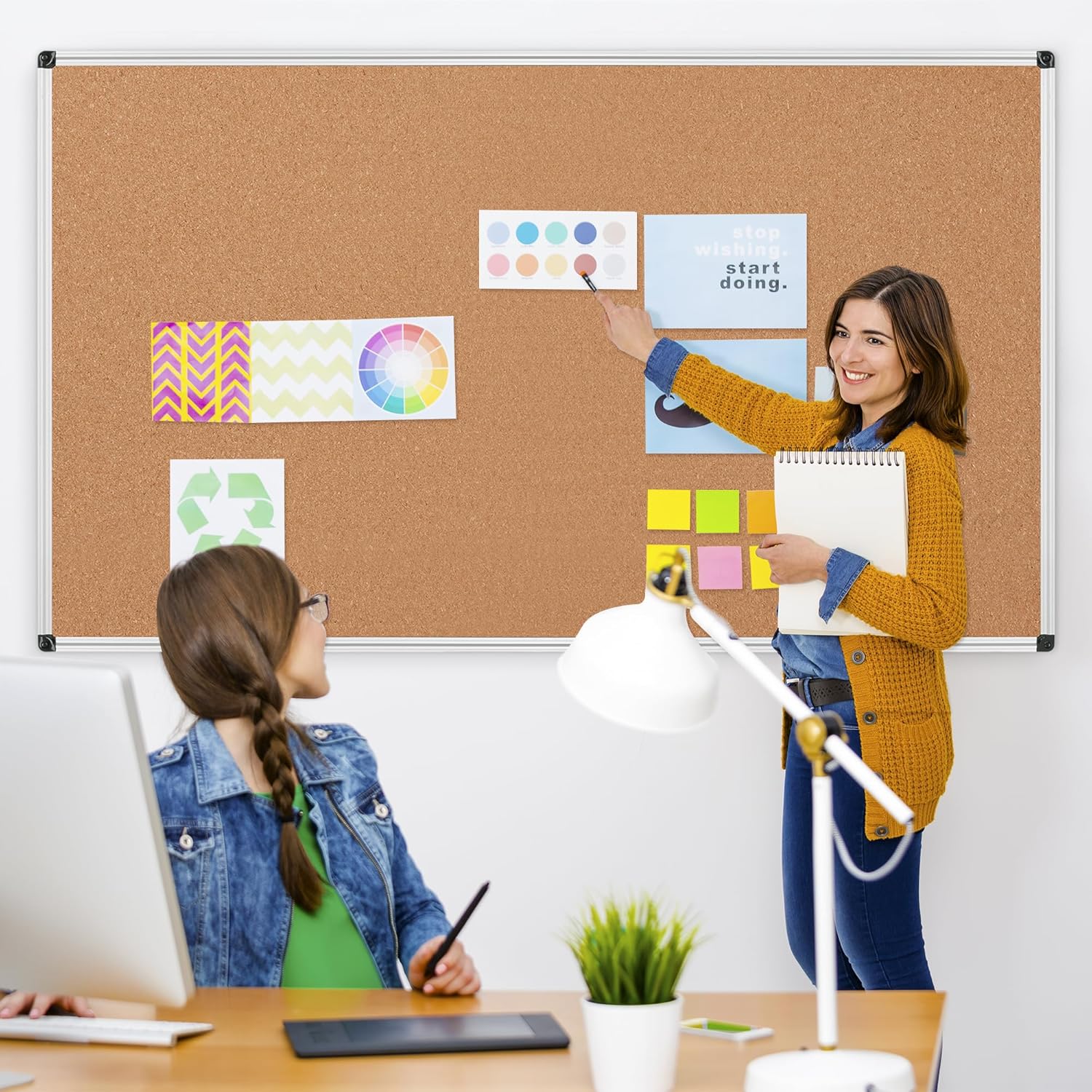 Board2by Extra Large Cork Bulletin Board 72" X 48", Silver Aluminum Framed 6'x4' Corkboard for Wall, Wall Mounted Notice Pin Board with 18 Push Pins for School, Home & Office