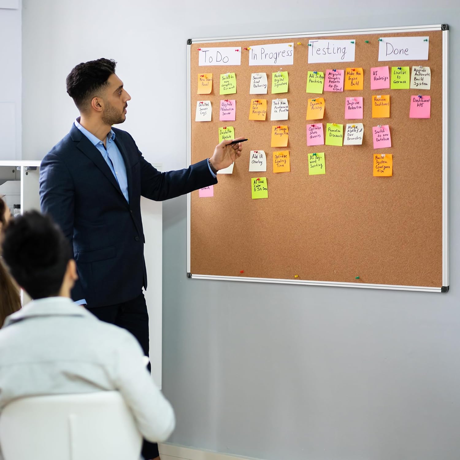 - Wall-Mounted: Height of the suspension is freely decided, using push pins to pin notes, messages, pictures, memos, calendars, and sticker, used widely in home, office and school for memo, meeting, teaching, etc