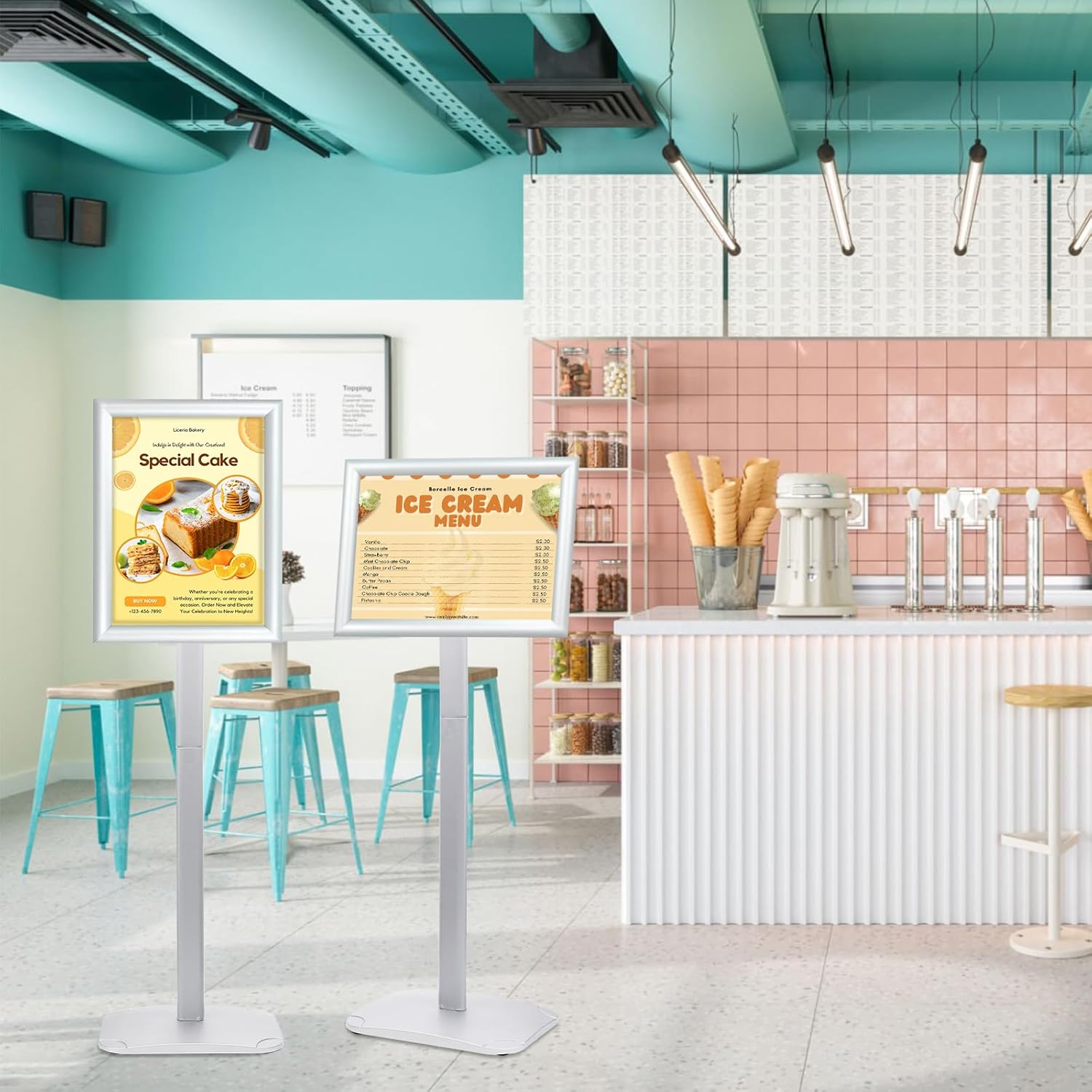 - ✅ 【Fit for 8.5"x11" Posters】Perfectly accommodating 8.5"x11" size posters, with a height of 46.4" in horizontal and 47.6" in vertical positions, ensuring ideal readability and presentation for your displays.