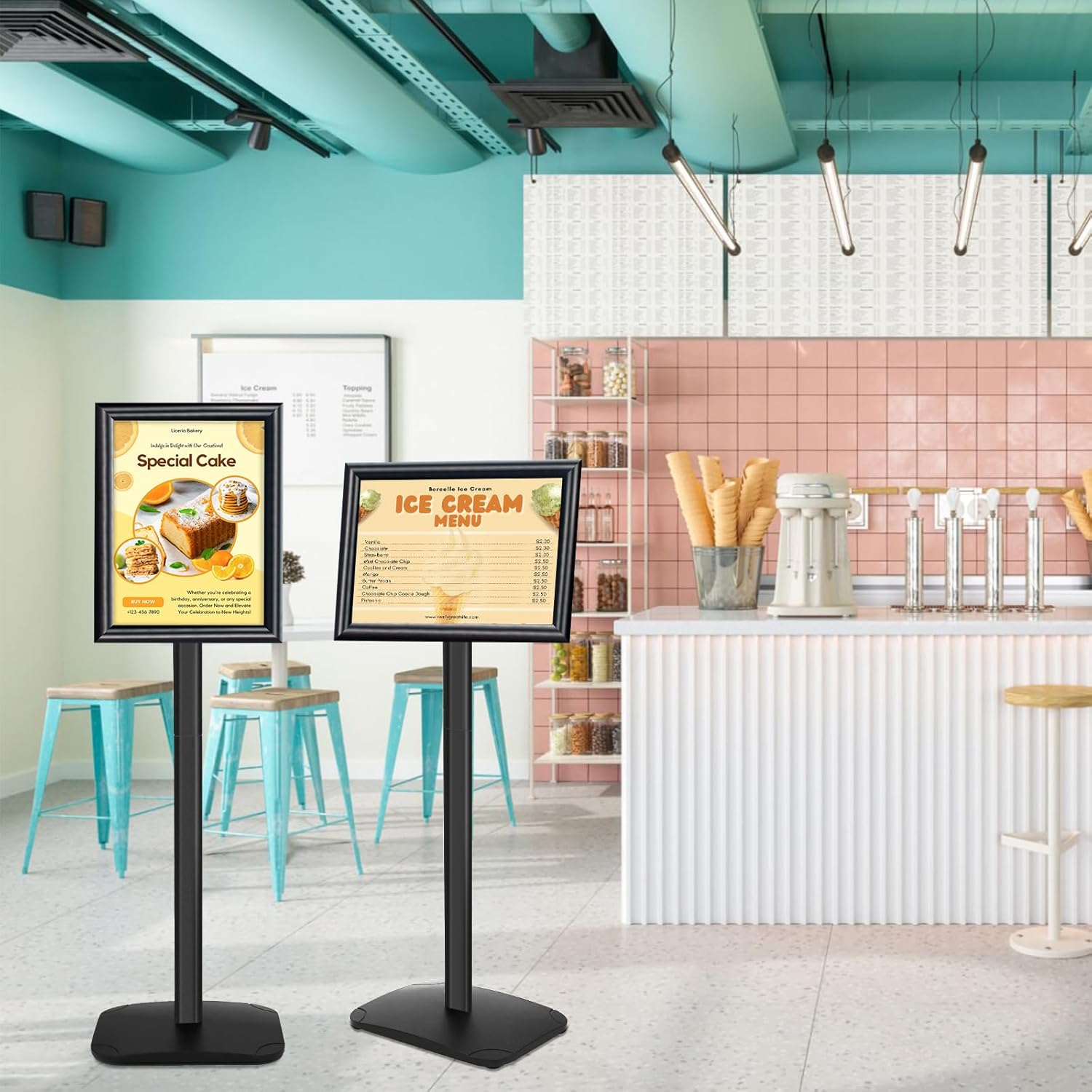 - ✅【Versatile Applications】The floor standing sign holder excels in displaying posters, directions, warnings, and signs like "please wait to be seated" sign, as well as serving as a menu stand.