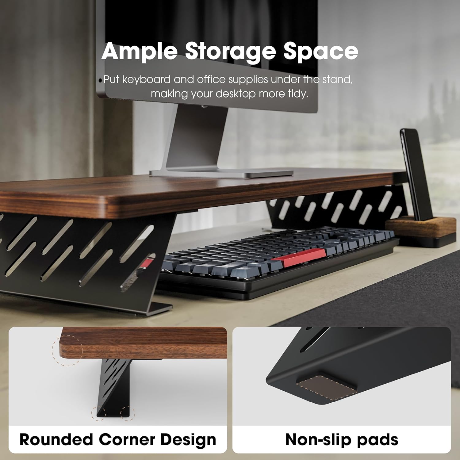 - 【Monitor Stand for Desk】To ensure fenge monitor stand can be used permanently, we have adopted high-quality thickened panels and metal legs. With heavy-duty steel base, so you don't have to worry about collapse or shaking during use. Each desk leg is equipped with a non-slip pad to prevent the table from being scratched. The maximum load-bearing of the monitor riser can reach 55 pounds.