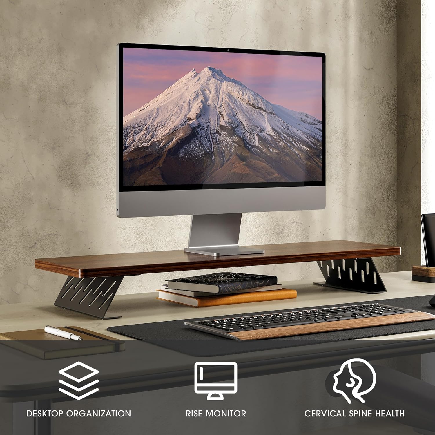 - 【Avoid Shoulder Pain】Desk shelf is raised 3.9" to a comfortable line of sight, effectively reducing the pressure on the neck and spine. The improvement of posture will make you more focused and prevent cervical spondylosis.