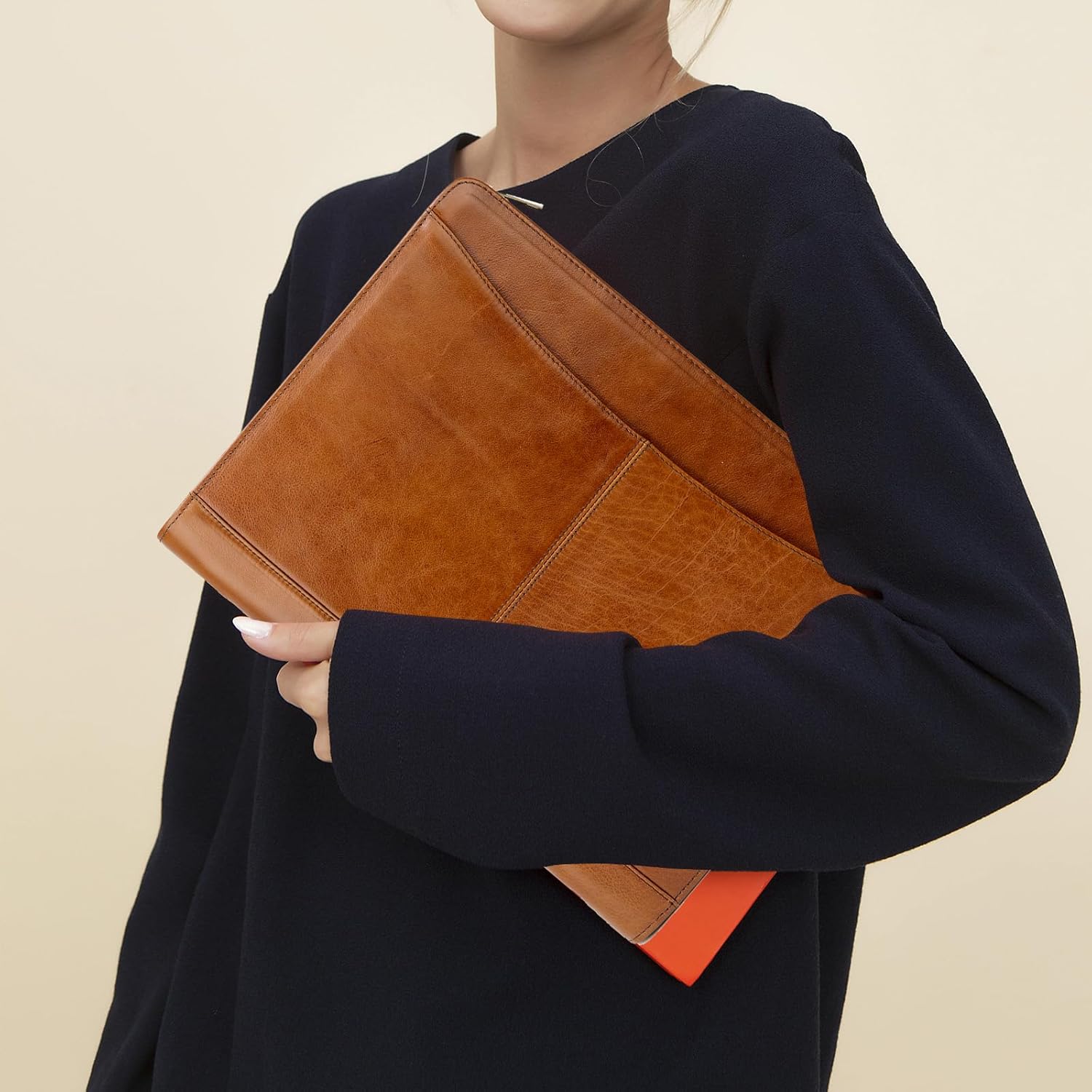 - Oil-tanned Leather: Compared to Crazy Horse leather, oil-tanned leather is smoother and less prone to scratches. The oils and waxes in the leather allow it to darken and become richer in color as it ages, giving it a characterful and vintage appearance. Our handmade full-grain leather portfolio exudes sophistication, with its rich and natural patina, making it a classic and luxurious accessory for professionals.