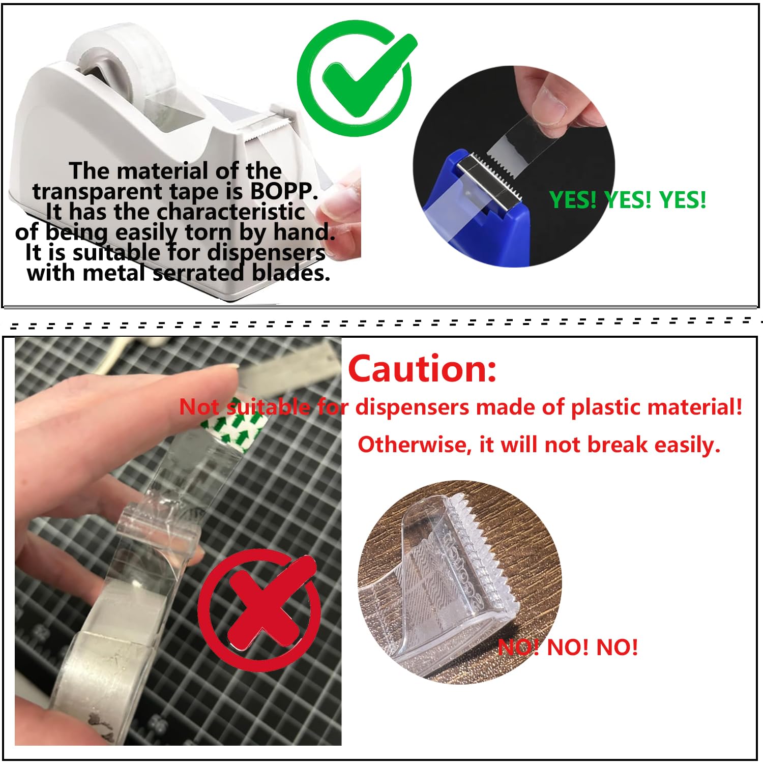 - Tape Refill:The material BOPP is not suitable for the dispenser with plastic sawteeth; otherwise, the tape cannot be cut well. It is recommended to use the dispenser with metal sawteeth.1-inch core of most dispensers.