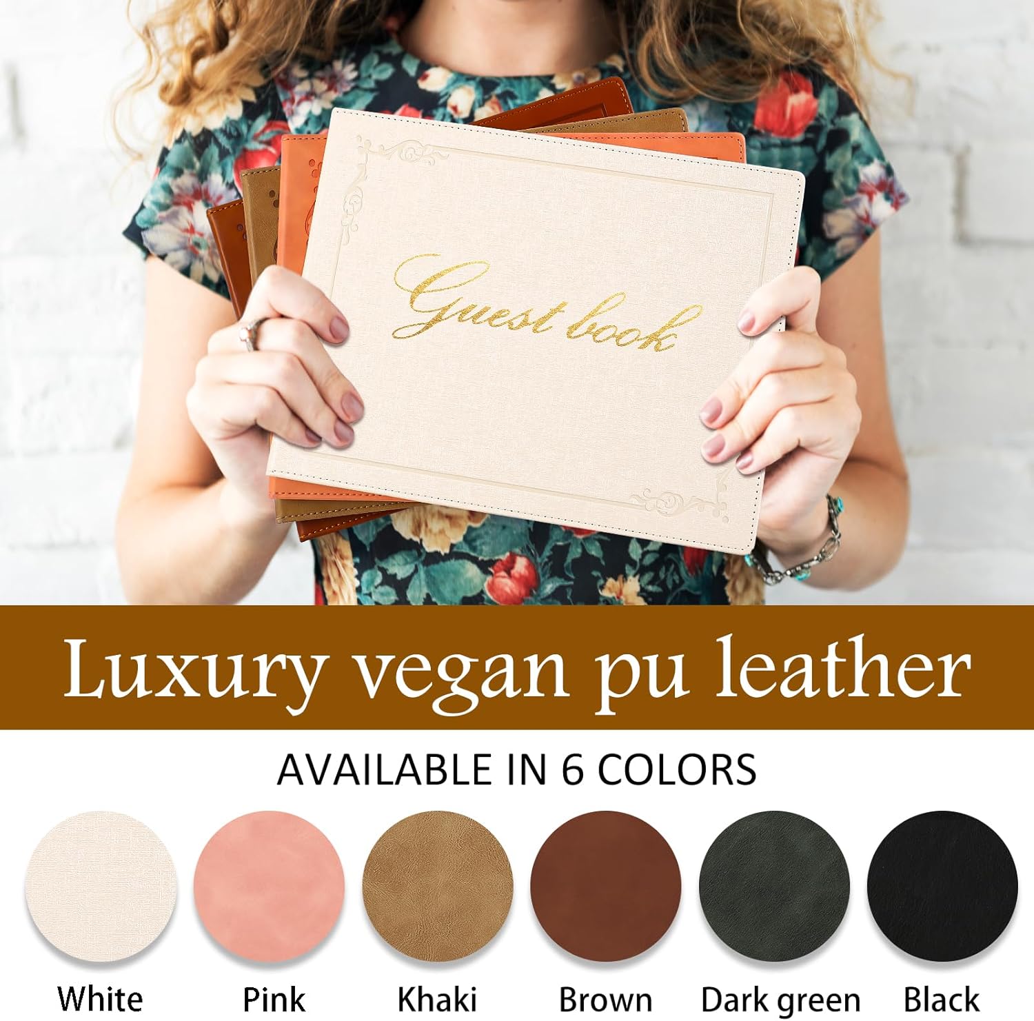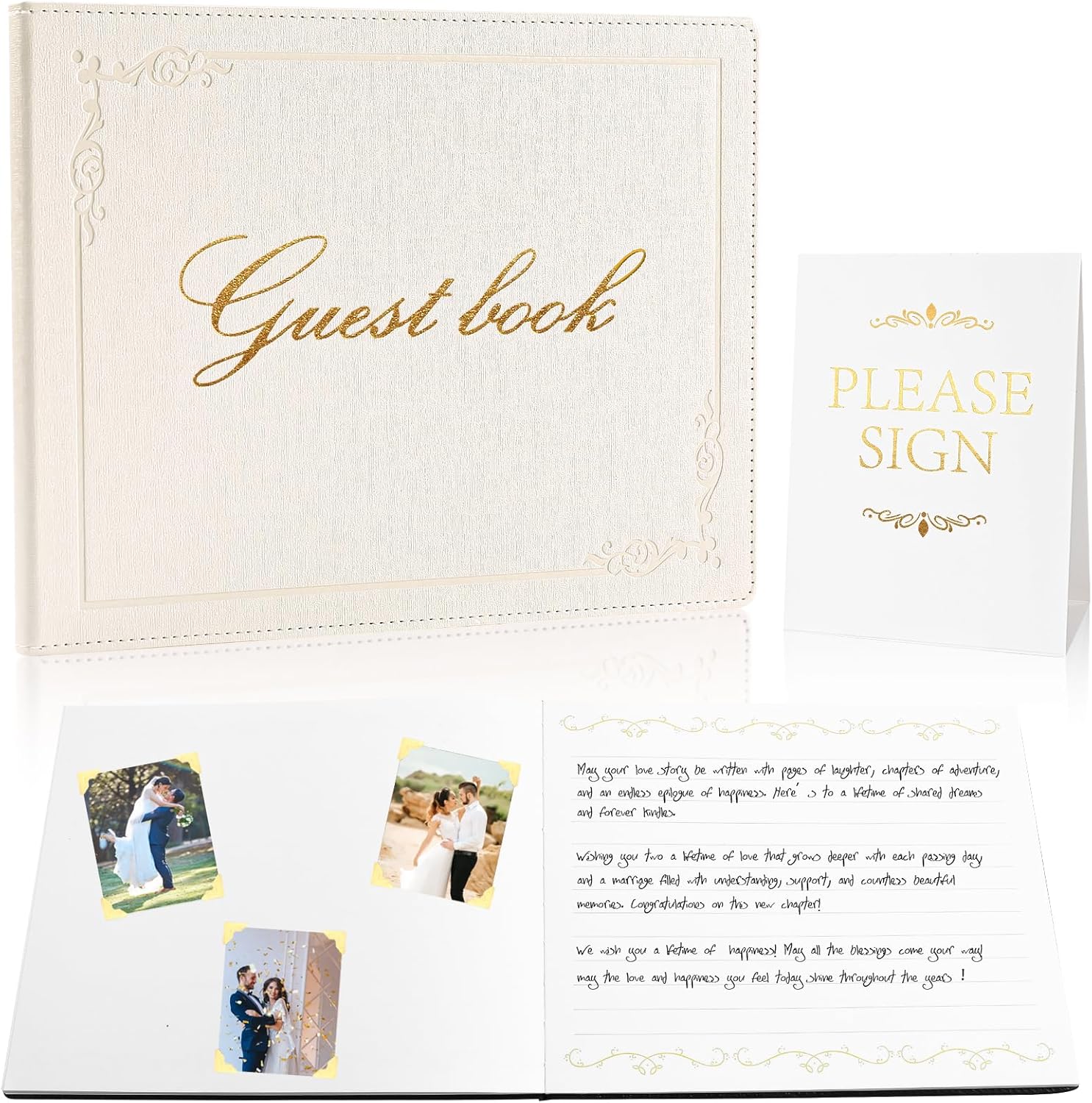 - ELEGANT DESIGN: Treasure your special day in our beautiful guest book. Measuring 8 x 10 inches, it comes with an exquisite PU leather cover, decorated with beautiful gold foil letters and crafted using advanced technology. The shimmering gold accents not only enhance the beauty of the guest book wedding reception, but also its overall quality, making it treasured keepsake for years to come