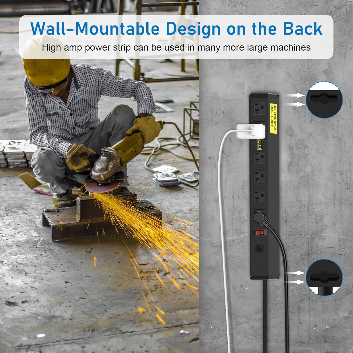 - 20 Amp high amp heavy duty power strip with metal housing, wall mountable and come with 6 outlets design, can be applied to high power industrial equipment.