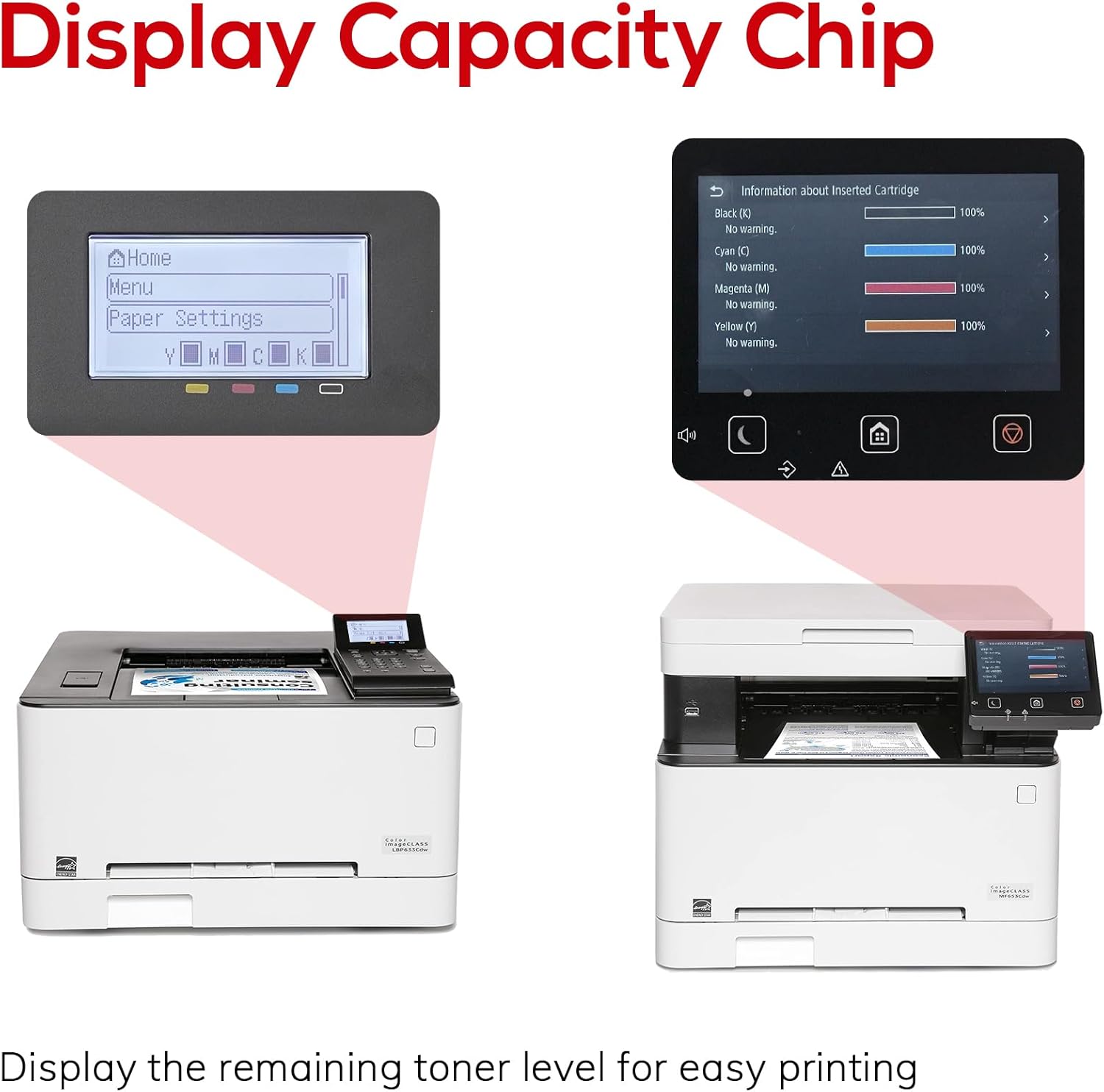 - Display capacity chip: Designed with advanced chip technology and compatible for Canon 067 toner cartridge set, it can check the remaining toner level of the cartridge in real time to avoid printing interruptions