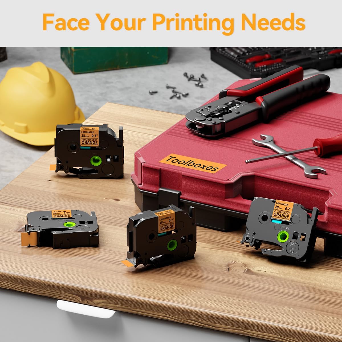- [Package] 4 Pack Compatible with Brother P touch tze tz tape 18mm label tape TZe-B41 (TZeB41/ TZ-B41/ TZB41), Laminated tape black on fluorescent orange. Width-3/4 inch 18mm, length- 26.2 feet (8 m) for each tape.